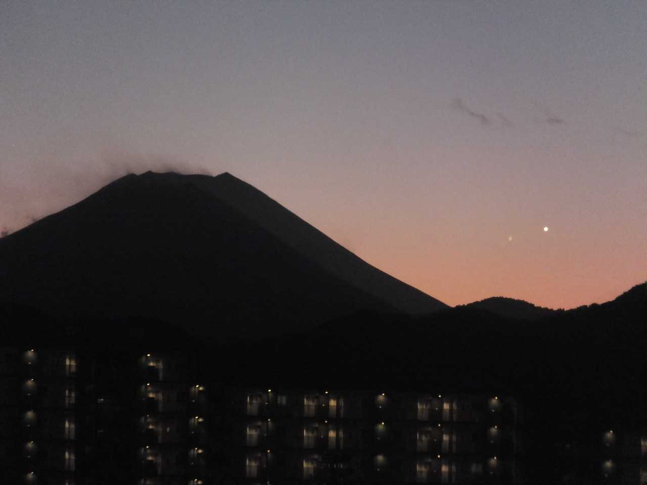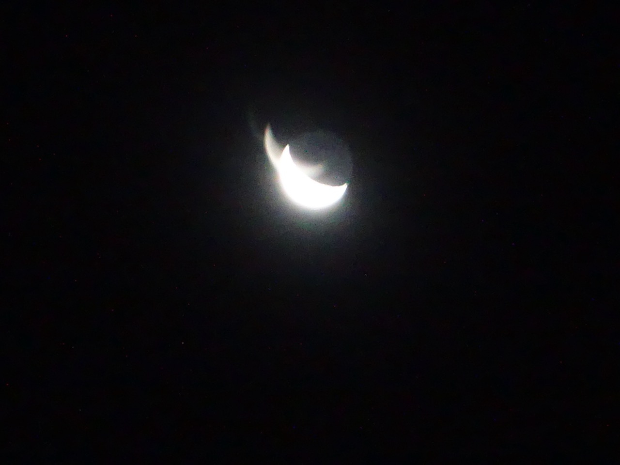 多層ガラスのため写真とると微妙に2つくらい影が写ります。金星を撮ってみたら連星のようになりました。