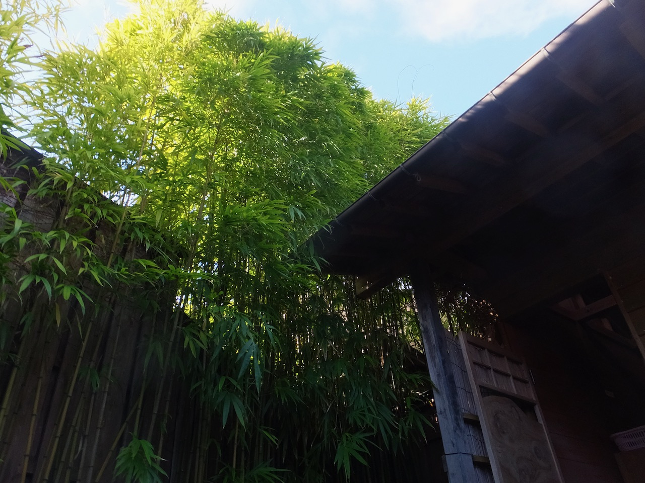 大浴場もあって旅気分。でも眺めはいまひとつ。格子のすきまから。