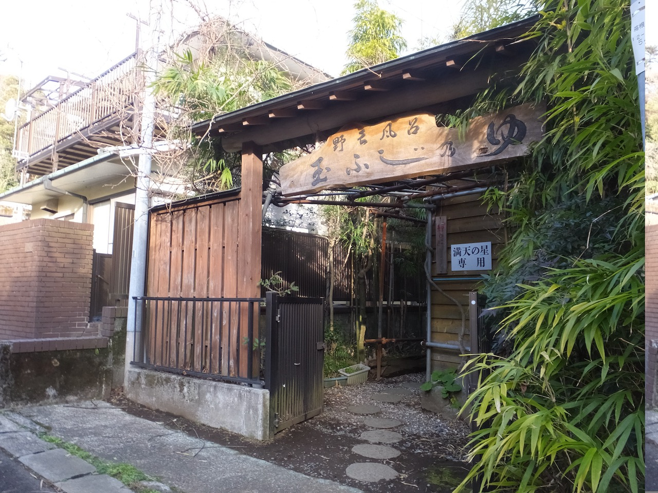 すばらしいのは貸切露天風呂。別棟というよりは離れた場所に風呂施設を有している感じ。細い温泉街の裏道を3分ほど歩きます。