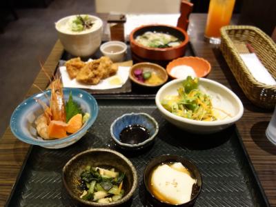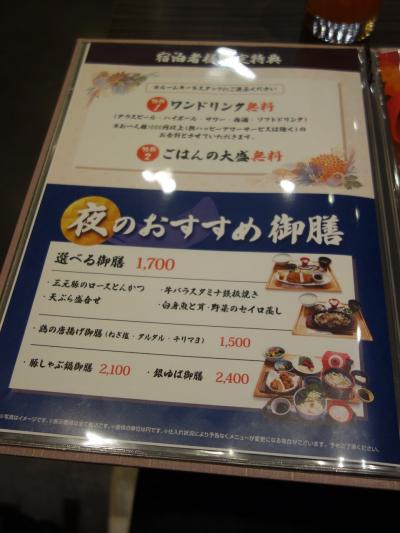2食つきプランで宿泊。夕食は1階の「銀ゆば」。高級居酒屋の雰囲気。メニューを見ると銀ゆば御膳2400円にワンドリンクがつきが一番高かったでのこれを選択。トレイ2つでくるくらいのすごい品数。美味しかった。