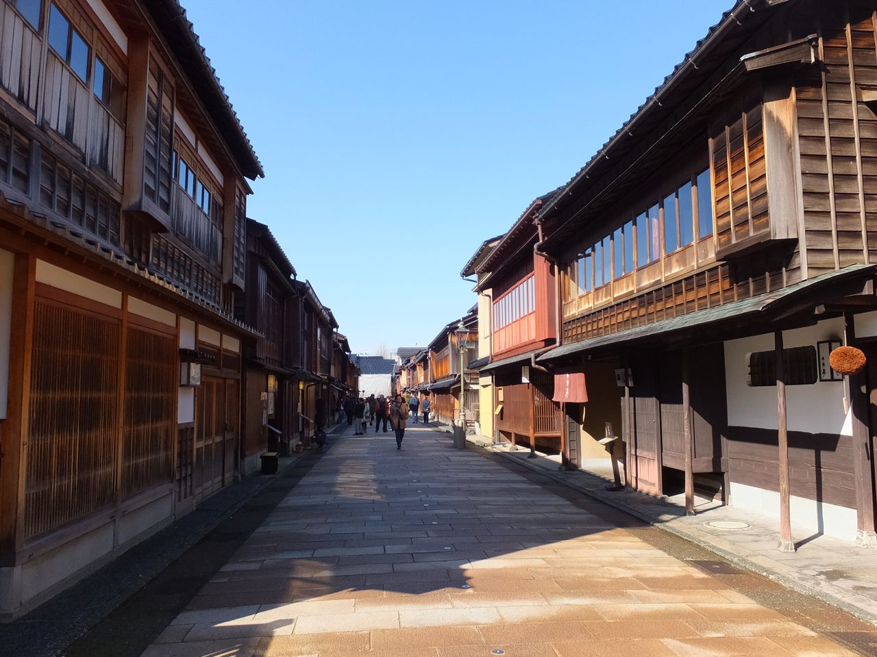 金沢に3つある茶屋街のうちのひとつで一番有名な茶屋街です。そのため人出がものすごく多いですので静かに鑑賞したい場合は雨の日か早朝くらいしかないのではないでしょうか。