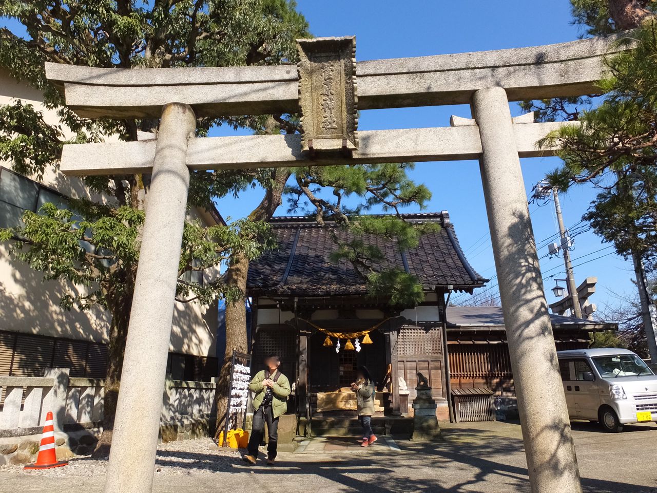 東茶屋街のはずれにある小さな神社です。昔、この東茶屋街に働く人たちの鎮守の神様だったそうで、となると茶屋街のできた1800年代の創建ということになり、そう古い神社ではありませんが、鳥居が新しそうな割には本殿(拝殿かしら?)は黒光りする瓦をはじめ古めかしく、歴史を感じさせます。当時の芸妓さんがここに参ったのかと思うと、祭りのときは華やかだったろうなあ、とも感じました。