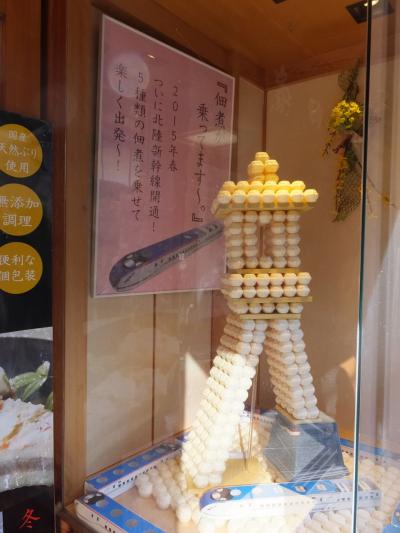 さて店頭右側のショーウィンドウには最中でつくられた兼六園のことじ灯籠。なかなかしゃれてます。
