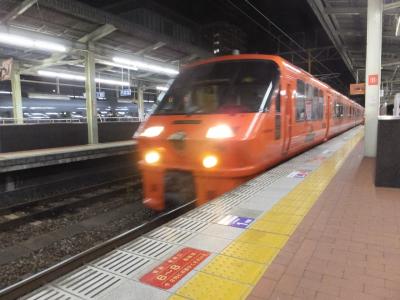 昔は赤ベースのブロックパターンの塗装で目立ってたのですが、近年はオレンジ一色。これもまた目立ってます。やはり観光地に行く特急は華やかな気分にならなきゃ、といったところですね。車内も灯具カバーが切子細工のような金属のカバーがかかっていてJR九州の各種観光特急を思わせます。カーテンも原色が数色。曇りや雨や夜でも車内は華やかです。