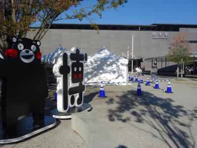 熊本駅前は市電乗り場までの広い歩行者空間が特徴の人が中心の広場。イベント開催用に作られたのではないかと思うくらい。実際、訪問日は産直品の販売のイベントが開催されていて大賑わいでした。