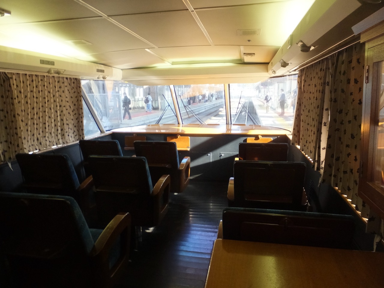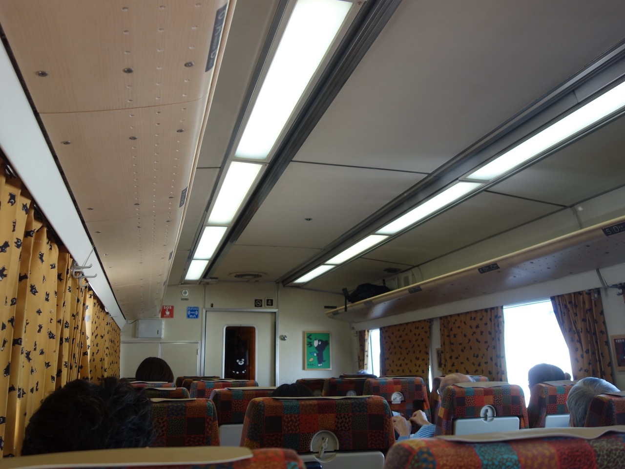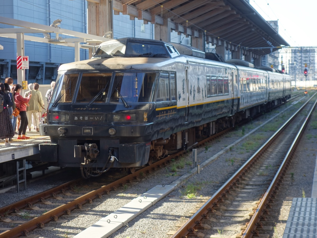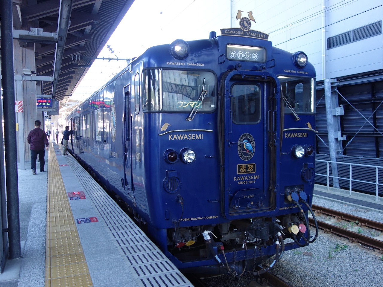 人吉と熊本を結ぶ特急だったのですが今はその路線が台風で不通になっているので阿蘇方面の特急に臨時で異動中です。朝9時の「あそぼーい」が満席が多いのに対し、この10時半ころのかわせみやませみは空席があることが多いです。観光特急としての車内のきらびやかさはこちらが上なので狙い目です。各停用の車両のリニューアルなので台車がそのままで揺れは大きいです。そう飛ばさないのでそれで十分ではあります。