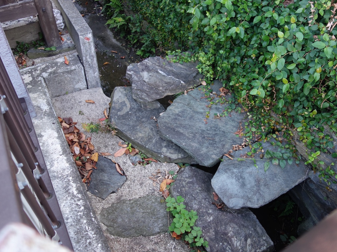 敷地の境に「土塁基礎跡」の平らな石が3枚残っていて、これも市内唯一の遺構なのだそうです。