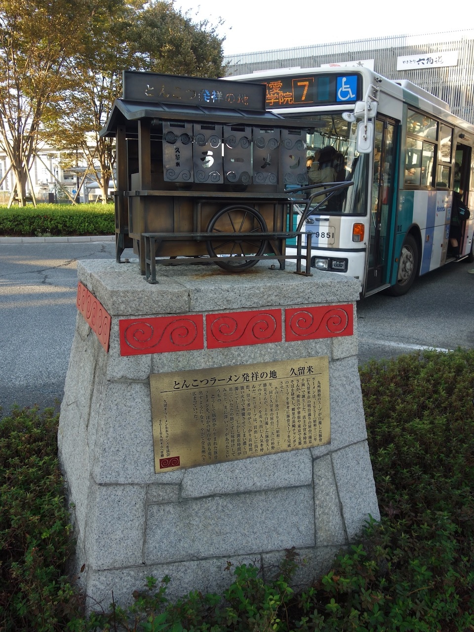 とんこつラーメンの歴史が書いてあるのですが、発祥が2段階あるようで、豚骨ラーメンの原型ができてから10年後に今につながる完成系の豚骨ラーメンができたとのこと。元祖系の争いがおこらないような配慮が感じられるモニュメントでした。- 旅行時期