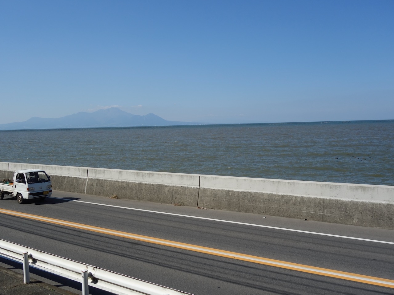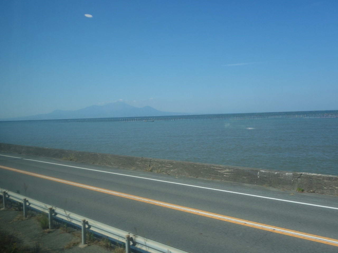 網田の手前まで有明海が車窓に広がり見事です。海の向こうには雲仙・普賢岳も見えます。