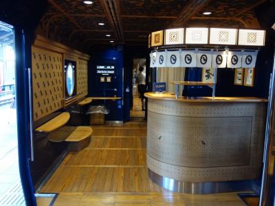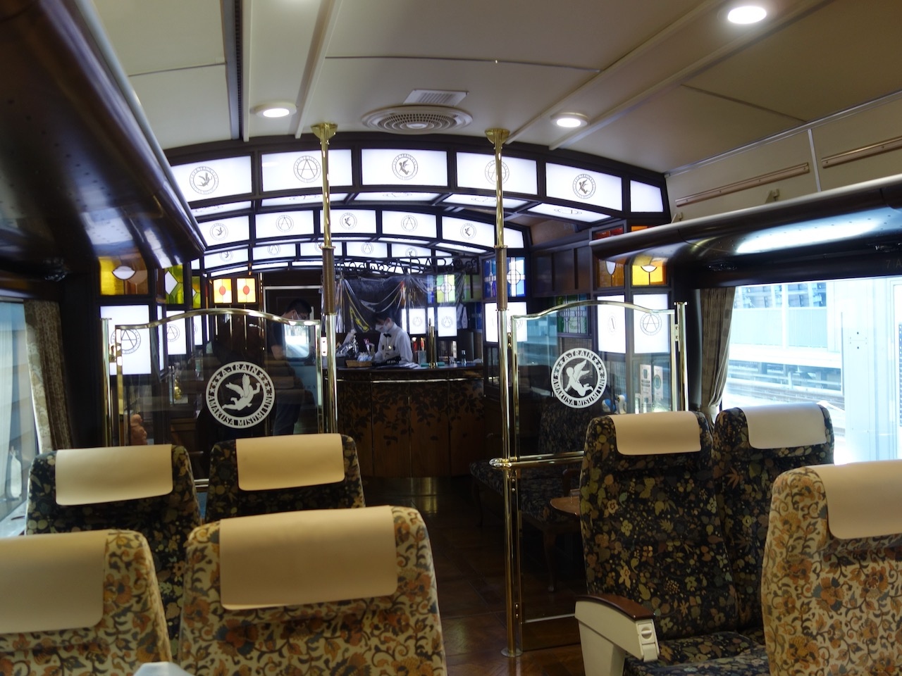車内はラウンジ・バーカウンターがアメリカンな感じで素敵。車内はずっとジャズが流れ、雰囲気を楽しげなものにしてます。