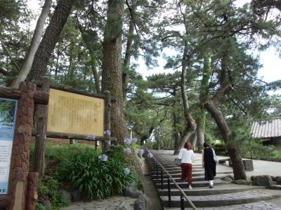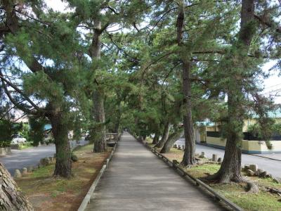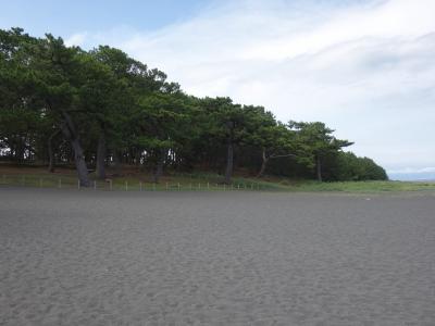 さて景色は一流です。砂浜はやや波に侵食気味な気もしますがきれいです。松林もこんもりとした林でおちつきます。散策路は細いですが一方通行になってますのですれ違いもなく安心です。