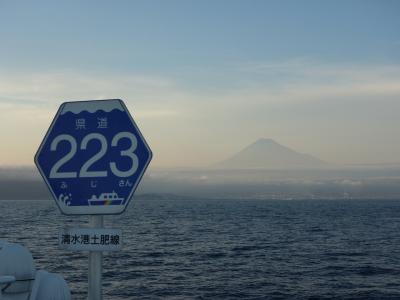 清水から土肥へ、県道223号線でもあるという航路。デッキにはその県道のナンバー表示があります。