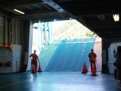 乗船時は車の積み下ろしのハッチから。ドアが開いていくシーンを見ているとなにか別世界への扉が開く感じがして不思議な気分になります。