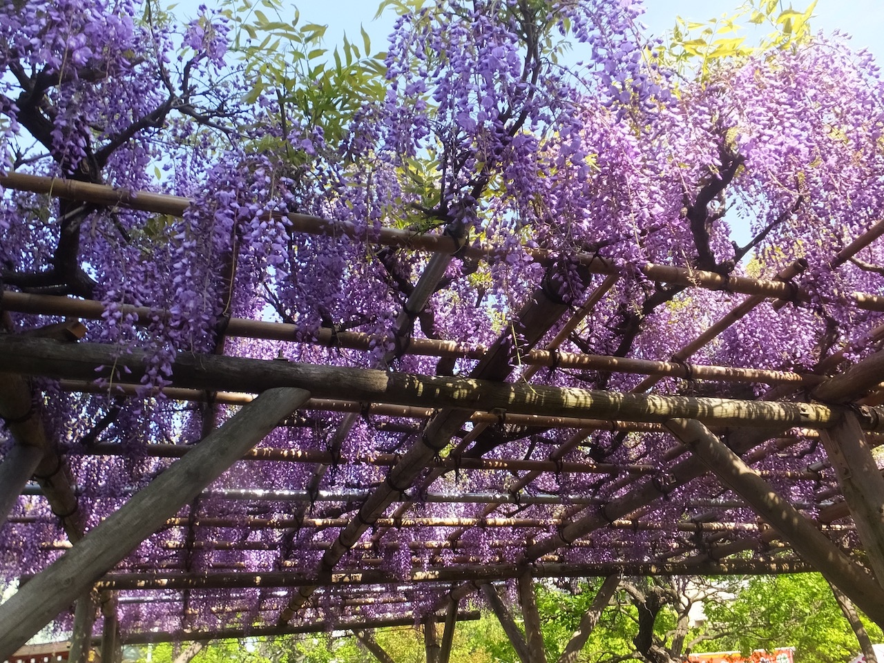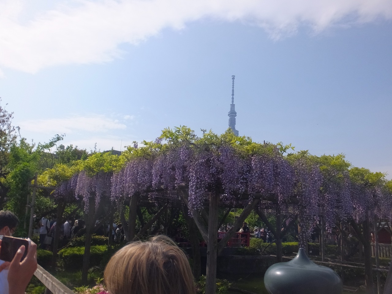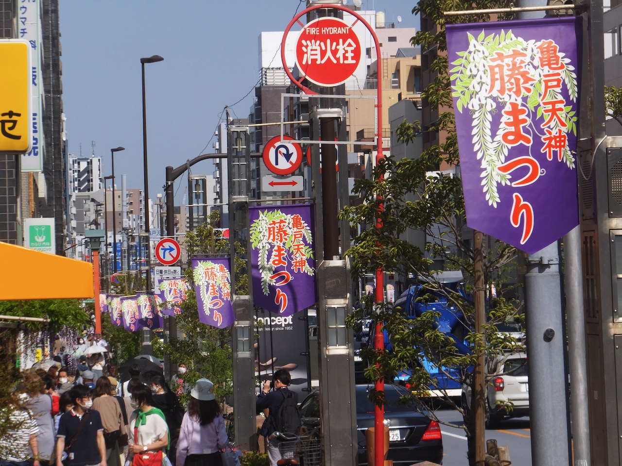フジの花は東京ではゴールデンウィークが見ごろだったはずですが、近年はどんどん開花がはやくなっているようで今回は4月の23日に訪問。ほぼ満開でした。咲き始めがきれいなので、もうちょっと早い方がよかったかもしれません。藤まつりが中止だった2021年にくらべて格段に混雑が増している感じでした。またバス停も列が長く、錦糸町や亀戸駅から歩くのが正解、と感じました。
