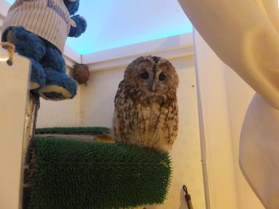 名称のオウルは「ふくろう」のこと。置物のように動きませんが本物のふくろうがロビーの片隅にいました。- 旅行時期