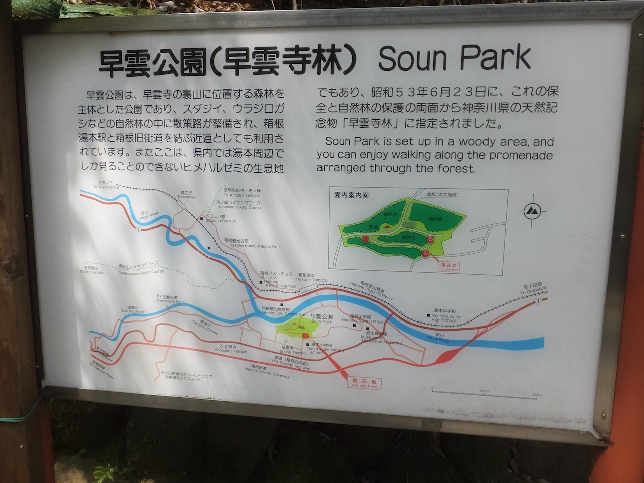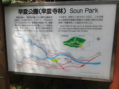 早雲寺から箱根湯本駅に向かう際にショートカットのために利用、と思ったのですが、一番便利そうな入り口は閉鎖されていて、西側の住宅街の奥の入り口から入りました。地図をみると先ほどの入り口からの階段が通行止めになっていたので、それで入り口も閉鎖していたようです。