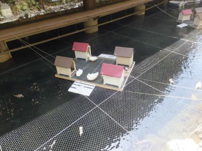 玉簾の瀧を見るために訪問。箱根湯本の観光案内所でもらった湯本の街歩きの地図で、「ホテルの中にあいます」とおいうことでちょっとハードルが高かったのですが、杞憂でした。箱根湯本駅から温泉街をとおり、須雲川に沿った滝通り温泉郷へ。5分ほど行って見える対岸にある大きなホテルがこの天成園です。玉簾の瀧がどこだかわからず、駐車場の案内の方に聞くと、その駐車場の入り口をすり抜けて行ったその先に中庭が広がっているとのこと。丁寧な案内にホテルの格を感じました。立派な門がありそこが入り口。8時から17時まで見学可能でした。散歩コースになっていて、滝以外にも神社があったり足湯があったり芝生や竹林があったりで変化に富んだ散歩ができました。スタンプラリーもやってました。面白いのがアヒルを飼っていて、池の上に浮いた家があること。4軒の分譲地みたいで楽しいです。