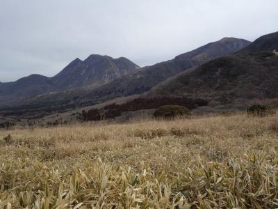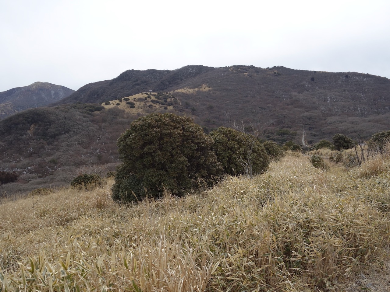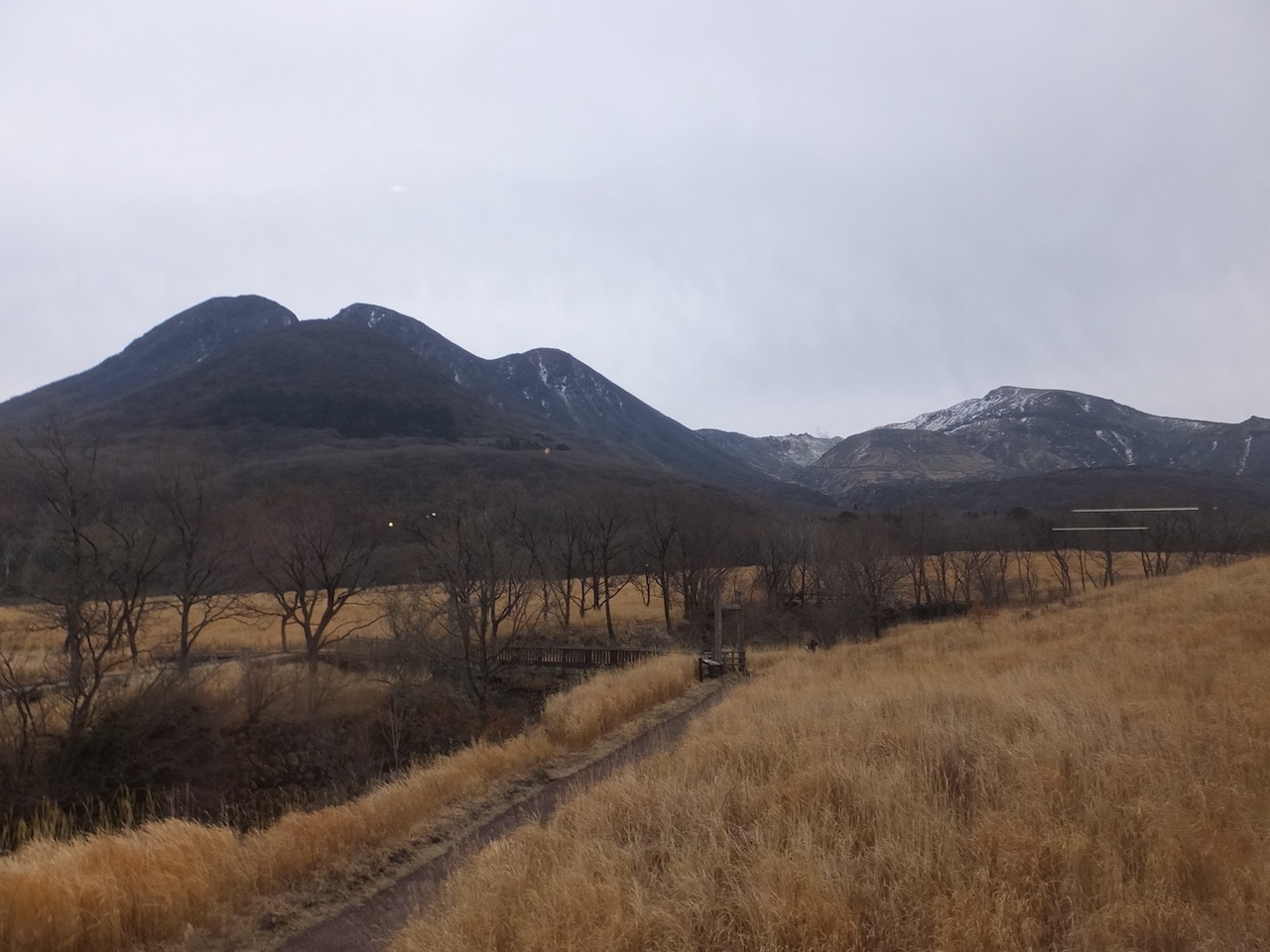 活火山です。今も煙を上げているのが長者原のあたりからも見えます。標高1700m級のこんもりした山々のかたまりで、見る分には形状比較など楽しいですがいざ登るとなると縦走することになりかなり体力が必要なので未登山です。