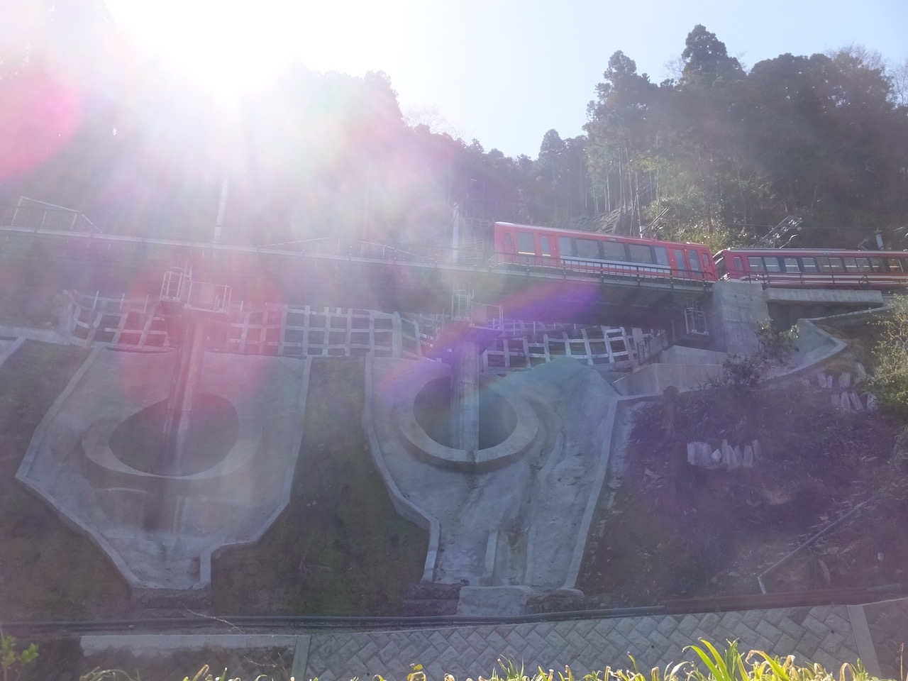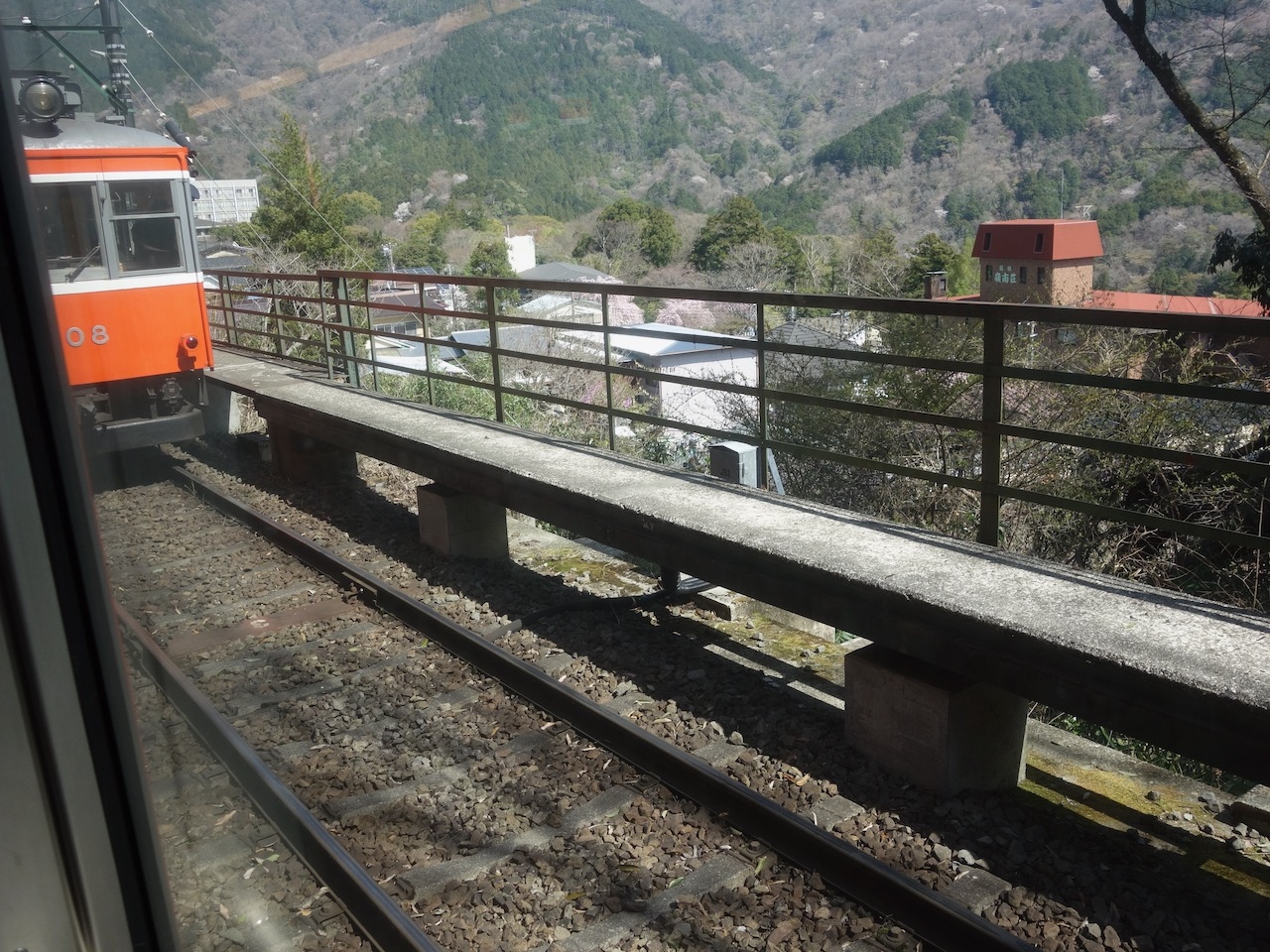 箱根登山電車で3つあるスイッチバックの一番上のスイッチバックです。箱根登山電車は上に登るほど急勾配、というのではなく箱根湯本から小涌谷までが急勾配。とくに大平台の前後が急勾配なのでここにスイッチバックが3ヶ所集中しているわけです。