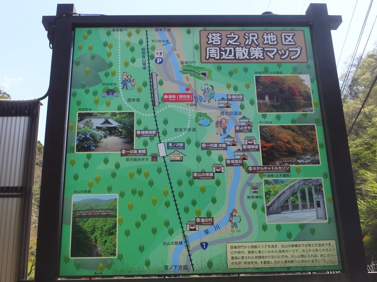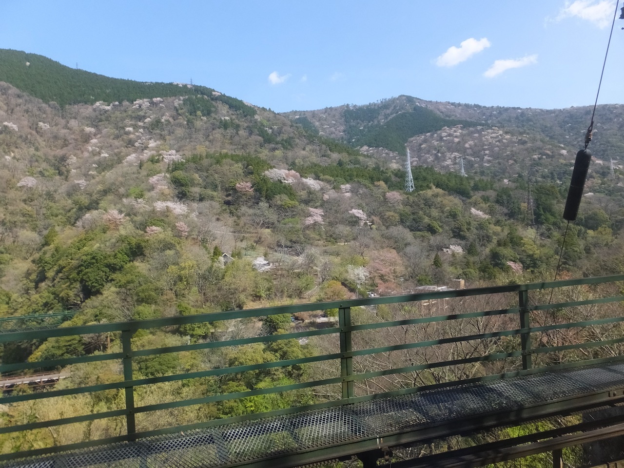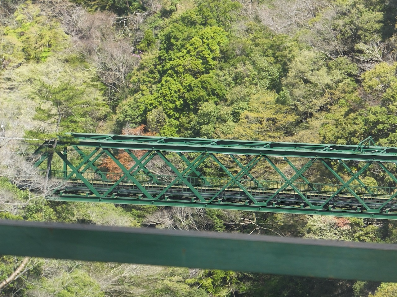 あとは、外観を見るのなら車内からは出山信号所で停車する際に強羅・湯本方でちらっと見ることができます。たしかに細長い独特の無骨なトラスです。山登りの電車の場合はさっき渡った橋が真横に見えるのが不思議に感じられます。ぐるっと半周したわけなんです。その高低差にも驚かされます。さすが登山電車です。- 旅行時期