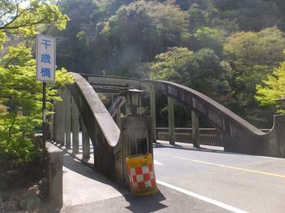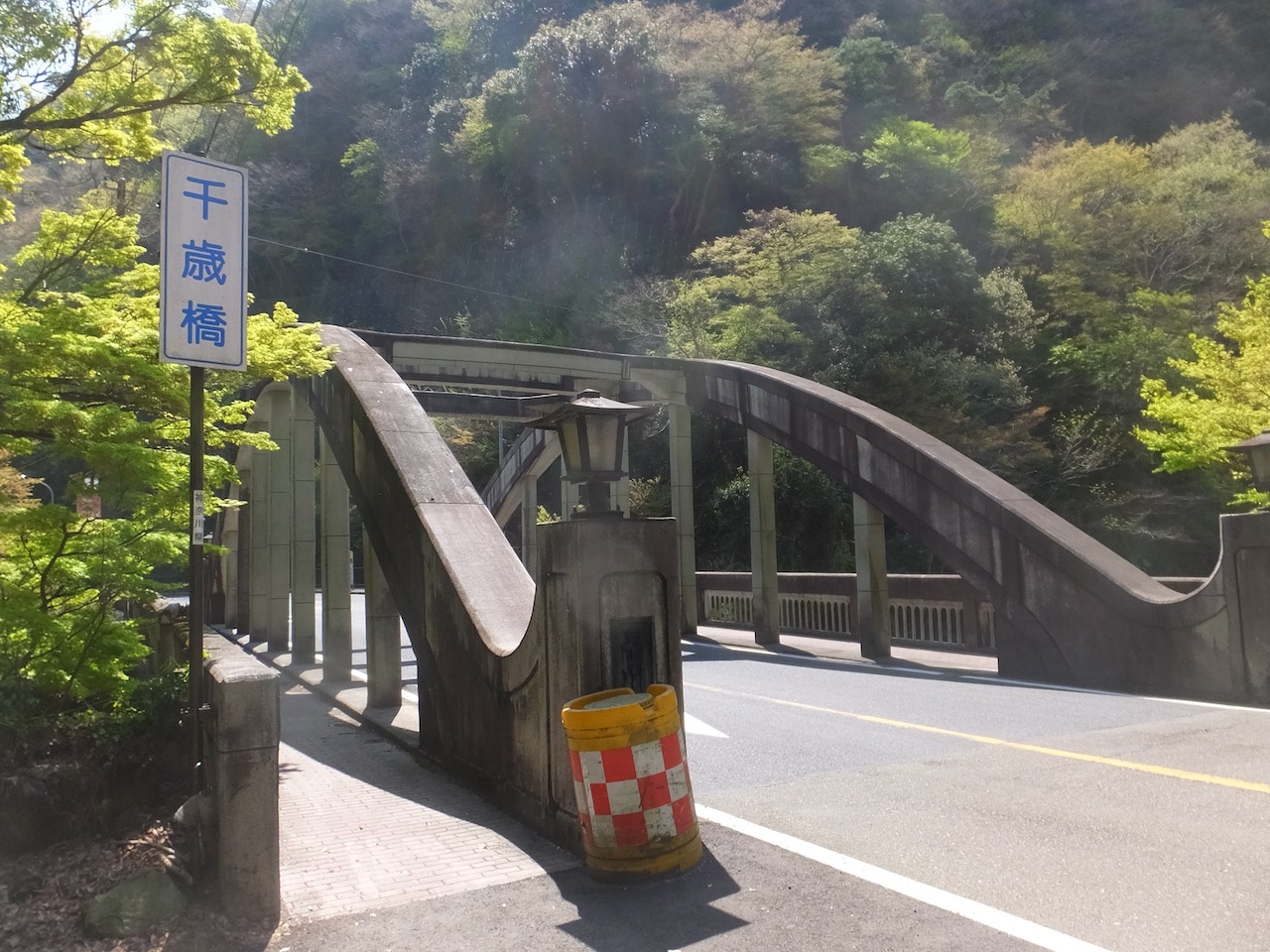 昭和初期の建造のコンクリートアーチ橋です。鉄のアーチと違って柱が太くどっしりした印象を受けます。それでいて角は丸められて柔らかい印象です。しかも橋の端は優美な曲線でくるんと上を向いていて、デザインにも気をつかって造られたことがわかります。湯本から塔の沢にかけては旭橋、発電所、函嶺洞門、そしてこの千歳橋とコンクリートの構造物が多く、車の往来に気をつけながらですが、散歩すると楽しいです。- 旅行時期