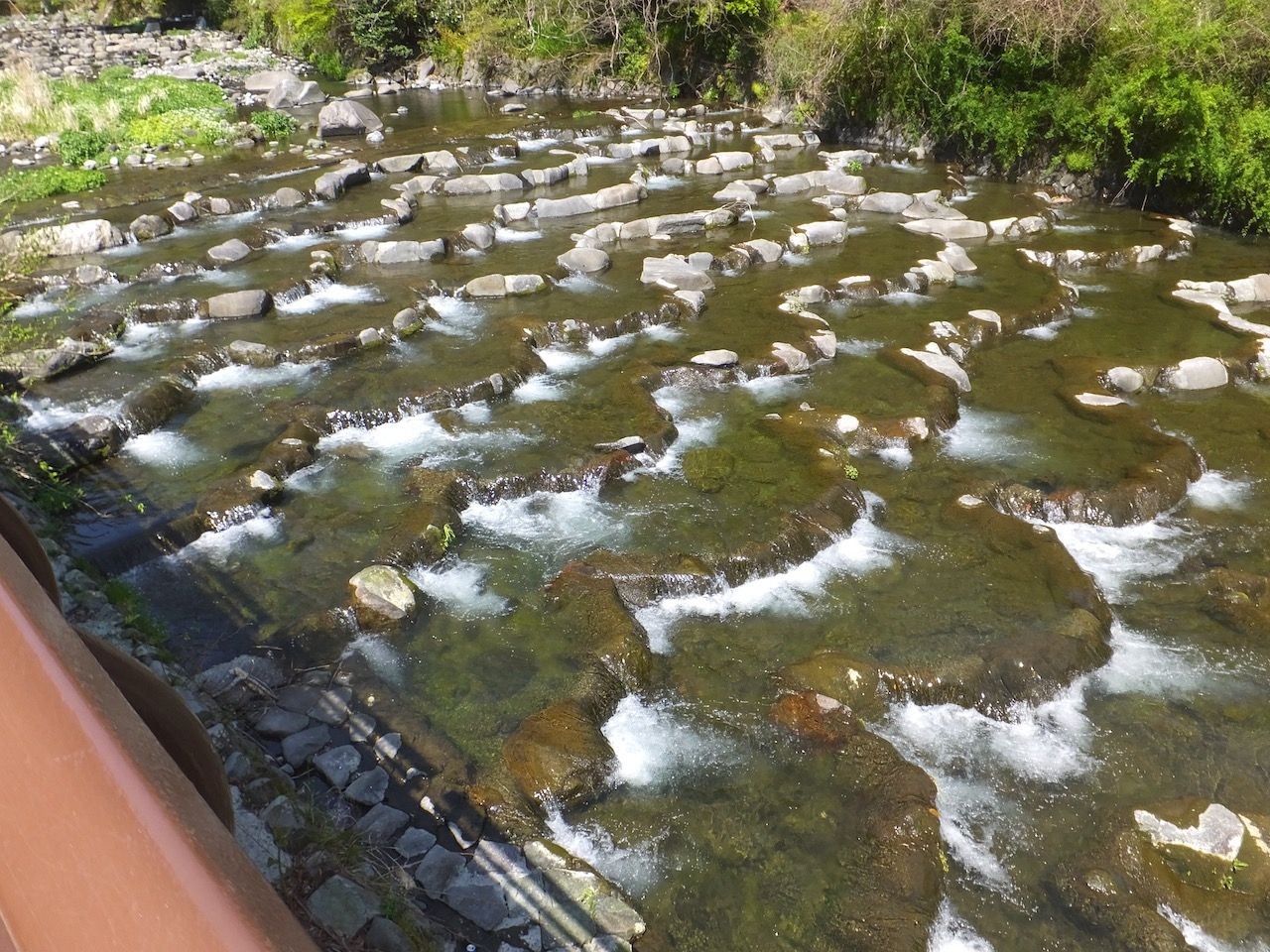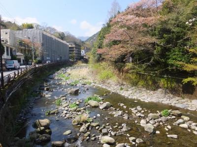 大観山あたりを源流として、甘酒茶屋から旧東海道や箱根新道のある谷を通り、箱根湯本の温泉街の西はずれ、旭橋の近くで早川に合流する川です。今回は湯本の温泉街のあたりを歩きました。滝通り温泉郷、という案内が出ていて、湯本の中でも駅から離れた温泉街であることを強調しているようです。正面には二子山がそびえ、急流であったであろう川は段々になるように石で整流されていて穏やかな流れに感じるようになっていて、散歩にはちょうどいい水辺でした。箱根観音まで遡り、そこから山の上の旧東海道の石畳を歩いて箱根湯本駅へ、という散歩がおすすめです。