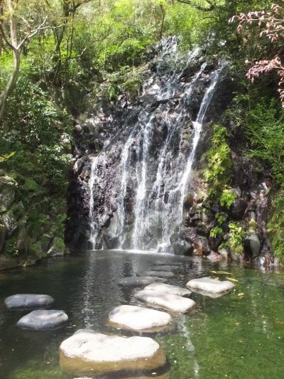 中庭の散歩道に2つの滝があり、手前が「飛烟の瀧」、奥が「玉簾の瀧」です。