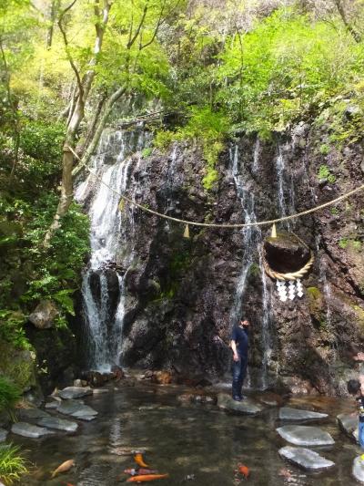 さて、この2つの滝は下側の基盤岩と上側の火成岩との境目から湧き出しているとのこと。そういわれてみると、川の途中ではなく、いきなり崖の途中から湧き出しているように見えます。湯本のあたりはこの2種の岩の境目が他にもあって、すぐ北の早川沿いには湯本温泉発祥の地があって2つの岩の境目から温泉が出ていた、との表示がありました。