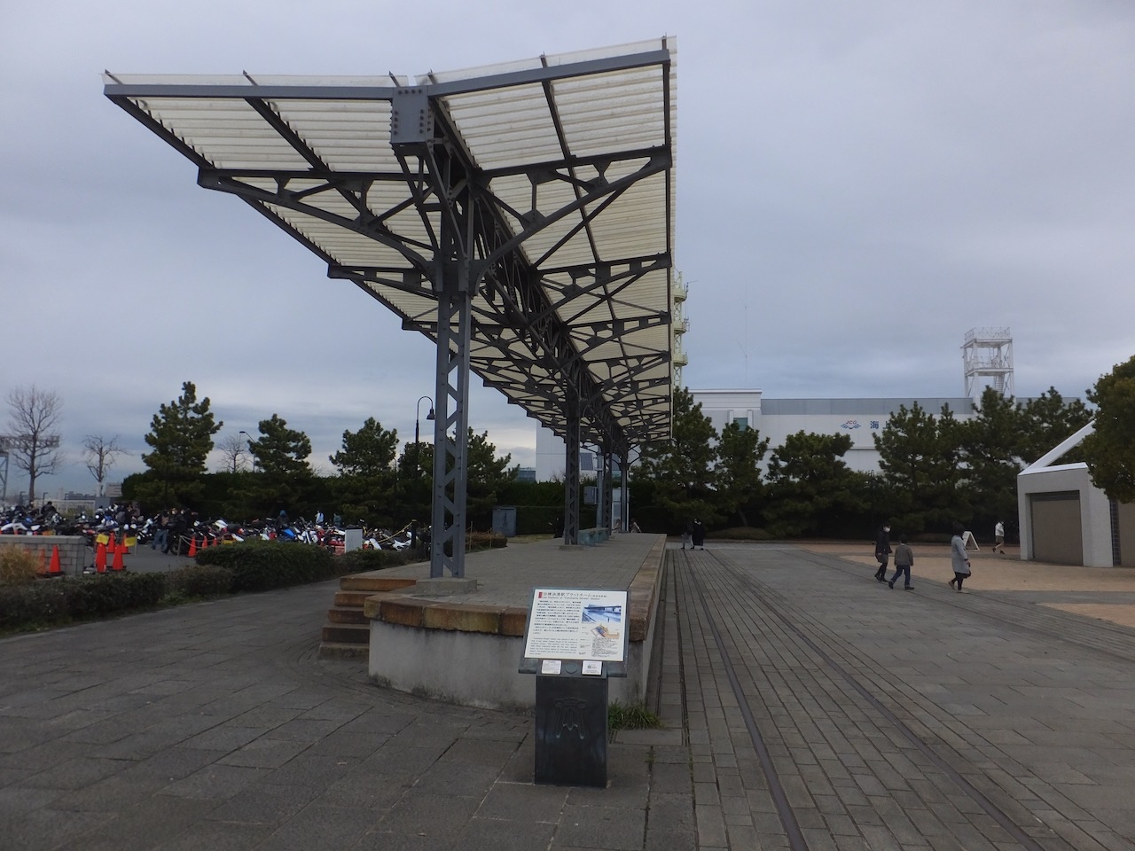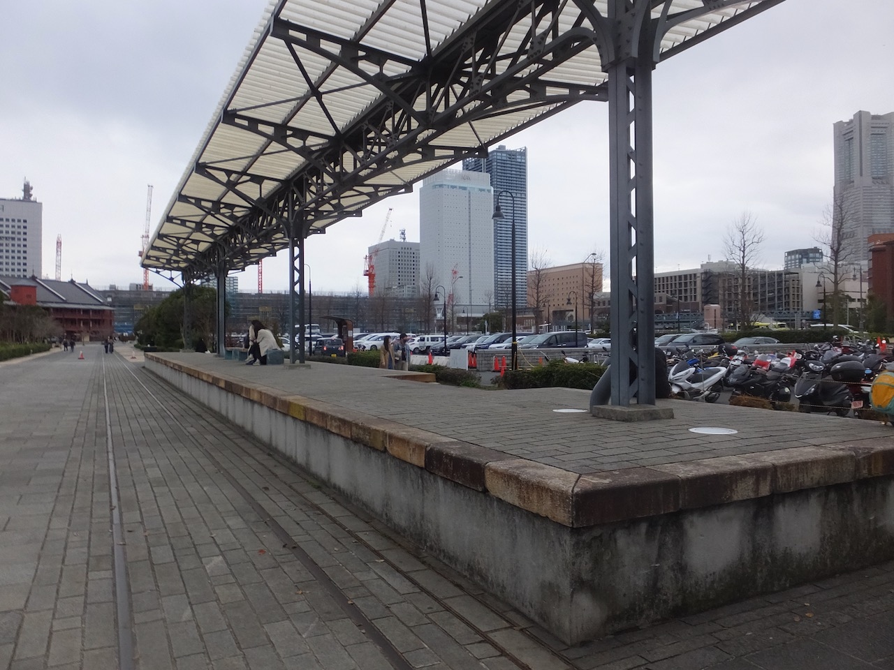 階段に座ってずっと話してるカップルや海を眺めてノンビりする人など、休憩や散歩的な使い方をしている人がほとんどです。ハンマーヘッドは商店街でもあり、その休憩としての使い方もされているようです。大さん橋より港の奥になるので眺めはいまひとつなのがちょっと残念なところです。- 旅行時期