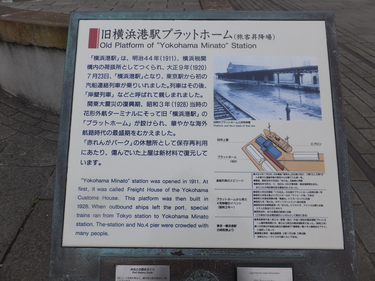 昔は陸の交通は列車、海外は船だったので、その連絡のための駅があったわけです。案内板によるとまさに直結。現在でもこのように列車と船が乗り換えられる駅といえば和歌山港くらいでしょうか。
