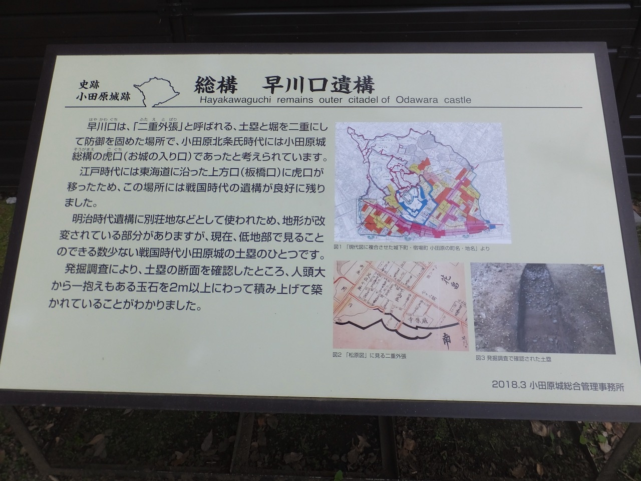 北条氏の時代の遺構がなぜここに残っているかというと、西側の城の出口が江戸時代に移動したので、結果として戦国時代のまま残っている、ということのようです。
