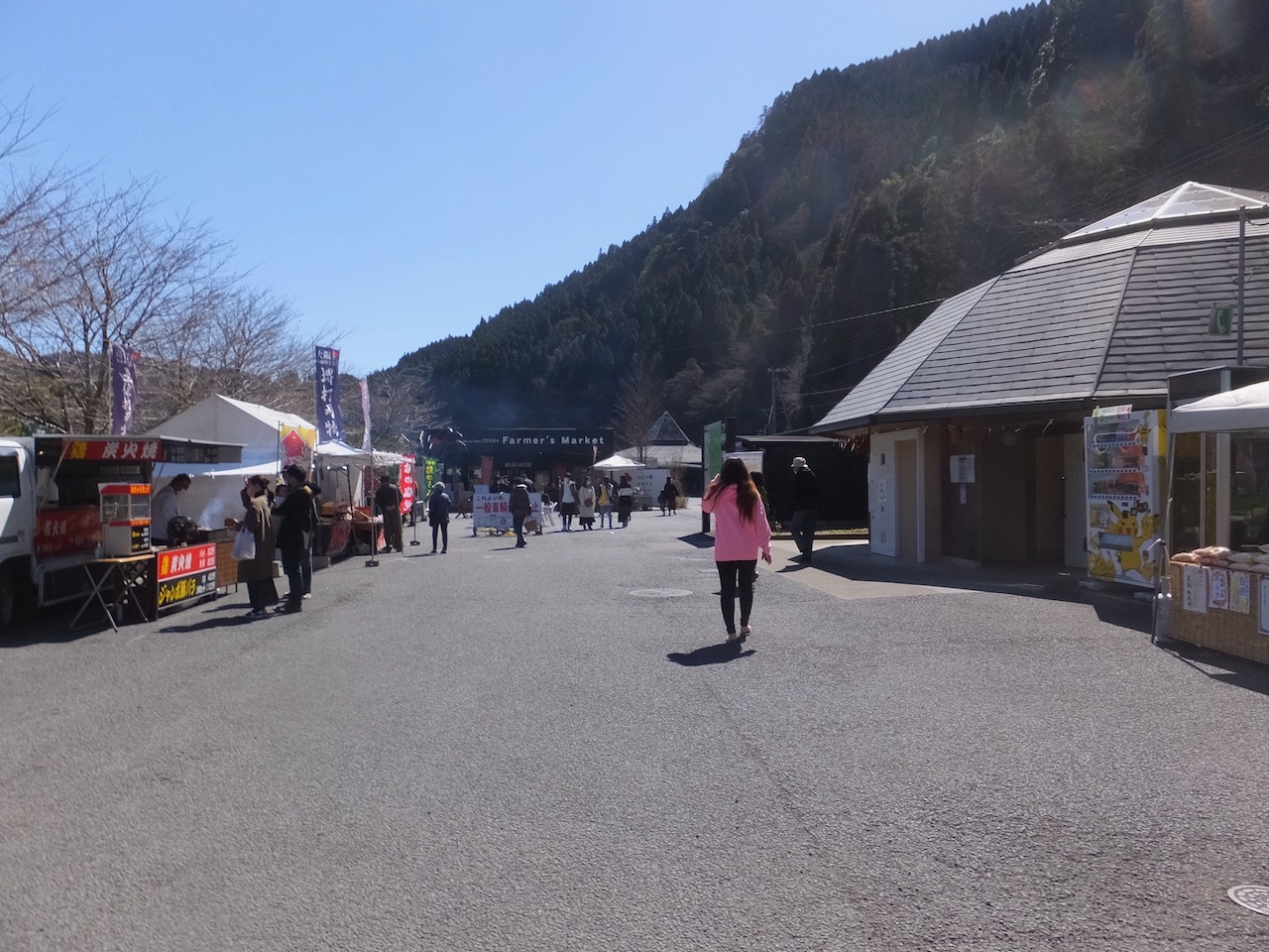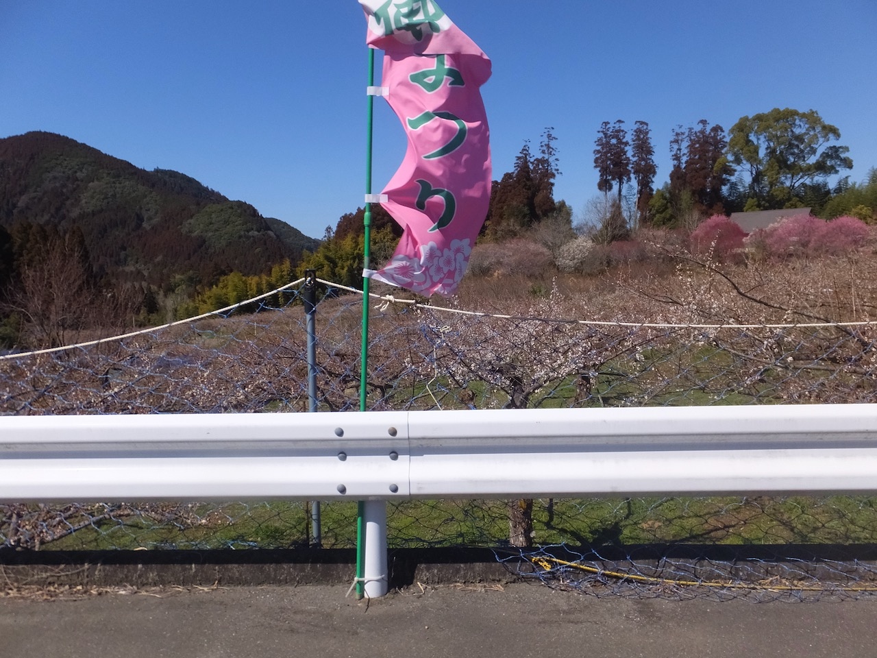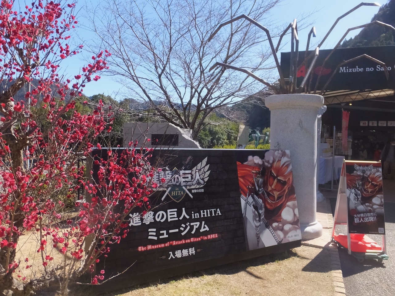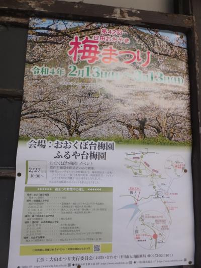 日田の市街地から南へ、かなり山に入ったところにある梅園が舞台。また、近くの道の駅や梅酒蔵でイベントもあります。訪問時は梅甘酒のふるまいや梅いかしゅうまいの配布などがあったのですが残念ながら30分開始時間に遅れたようで配布終了していました。まあ、配布開始時間の案内はなかったのでこれは運の部類です。