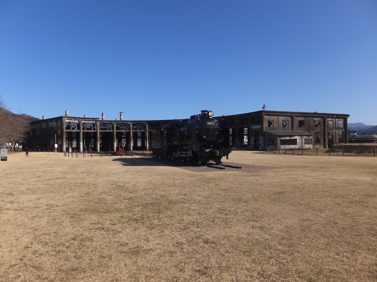 現地では機関庫と転車台以外はきれいに整地された芝生広場の公園になっていて、古い機関庫が浮かび上がるような存在感。きれいに復元したらこうはならなかったなあ、と思うと、そのまま残すのもよかった、と思えました。
