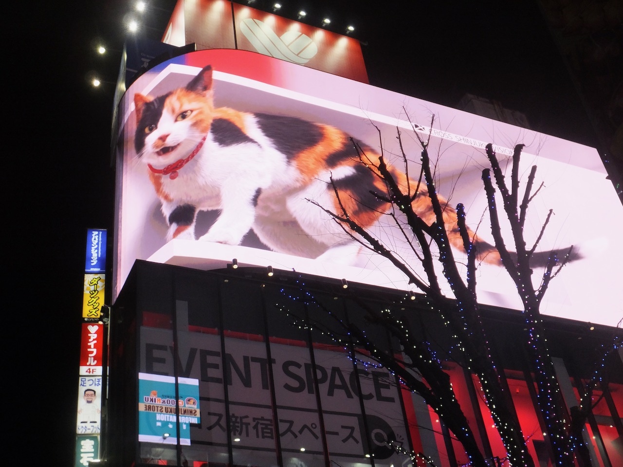 ところで、ただ猫が出るだけなわけがなく、広告のためのディスプレイなので、猫が出るまでかなり待つこともあります。あと、ただ飛び出すでかでなく寝ていたり、回転してごろごろしてたり動きも面白いです。見るだけですむ名所なので新宿駅東口に来たらちょっと見上げてみましょう。案外見ている人は少ないです。- 旅行時期