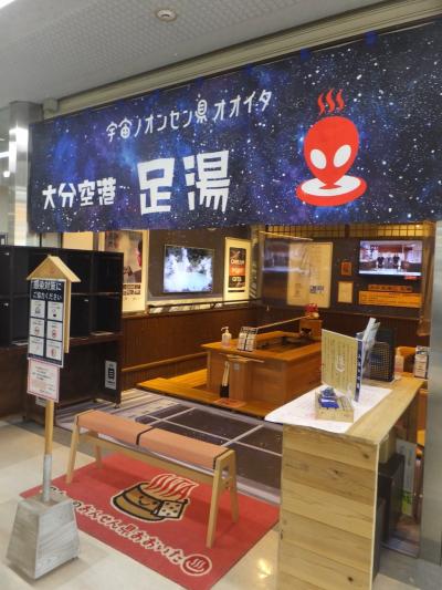 温泉県大分県の玄関口の大分空港はあまり温泉のない一帯。なので、運び湯のようです。よって営業時間が短くて最終便だと入れないこともあったのですが、久しぶりに大分空港に着くと、夜は19時までになっていて、遅い便でも入れるようになっていました。無料なのはもちろんです。そして靴下を脱げない人のための脚袋の貸し出しまであるそうです。いたりつくせりの足湯なのでした。