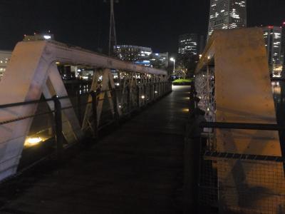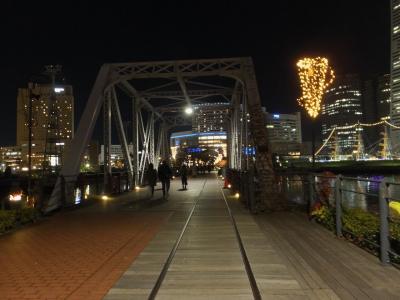 桜木町からワールドポーターズまでの海の中をゆく汽車道。昔の貨物線が遊歩道になっています。そこに架かる3つのトラス橋で、桜木町側から1・2・3号橋です。3種3様です。1号はプレートガーターと門型トラス橋の組み合わせ、2号は門型トラス橋のみ、3号は背の低い両側だけにあるトラス橋です。門型のトラスは海外製、プレートガーターは日本製、と当時の技術力の差がわかります。夜の散歩道では派手なライトアップはないものの灯でトラスの影が幻想的。夜の散歩もおすすめです。