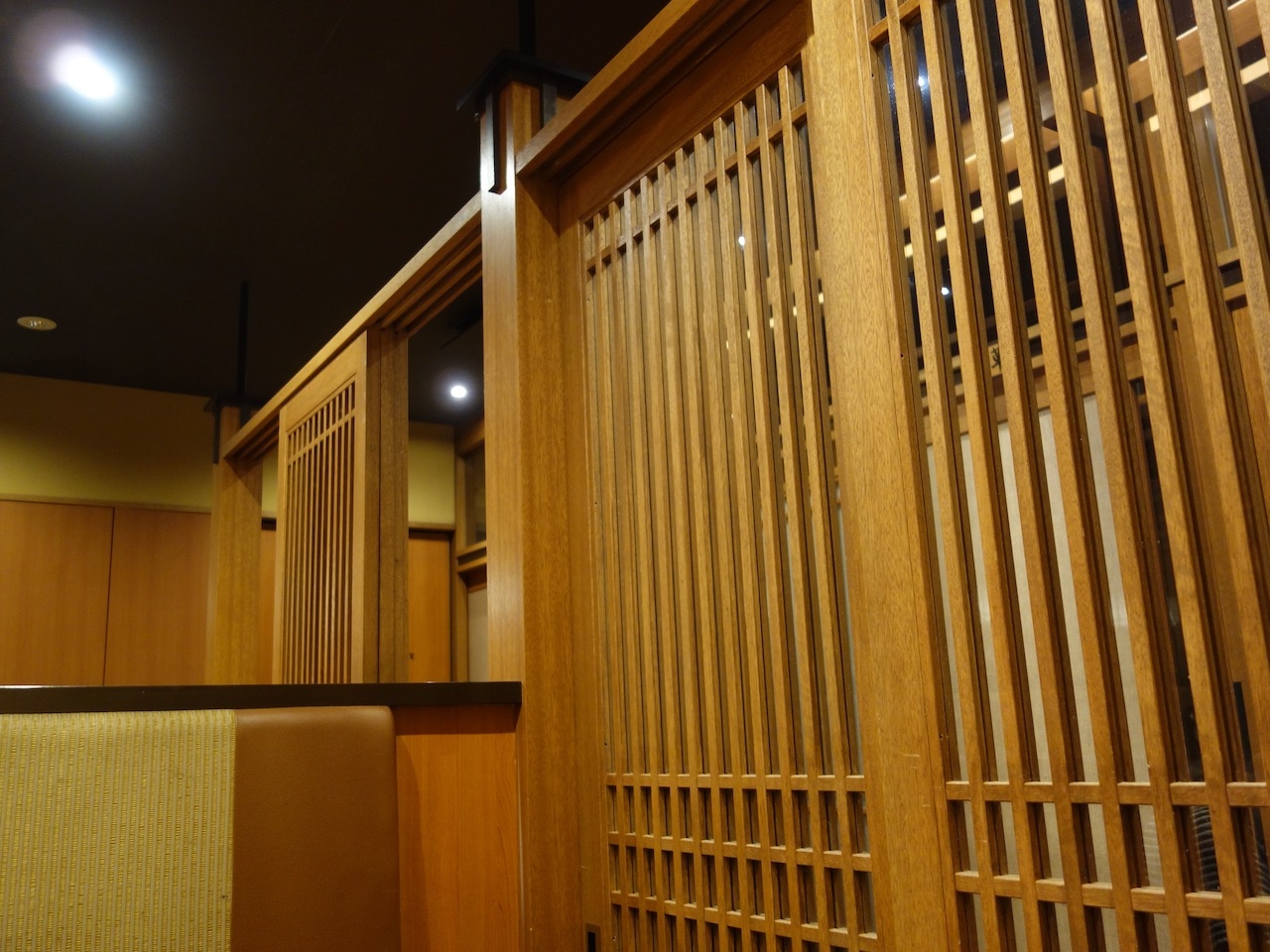 全席個室風の高い板壁で仕切られていて、扉まであるので高級感あります。