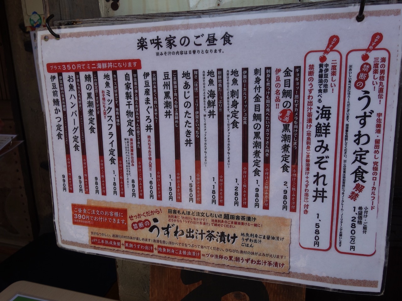 前者については、お店の壁のメニューに「僕が働いていたお店です。あじは、いかがですか」と書いてあります。直筆なんでしょうか。