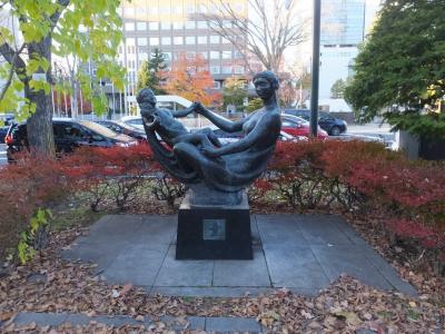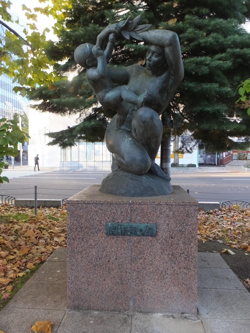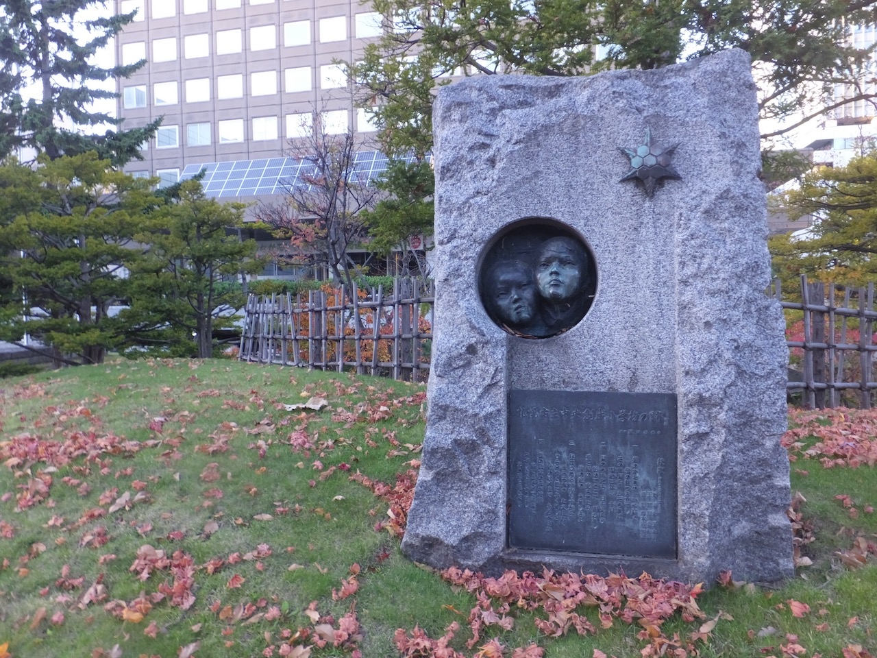 大通公園にもこのような碑はありましたが、校歌の詞の石碑の端に穴があってそこに子供の顔のレリーフがはめ込まれたデザイン。子供は石像にしちゃうと可愛らしいというよりはちょっと怖い印象になってしまうのが残念。