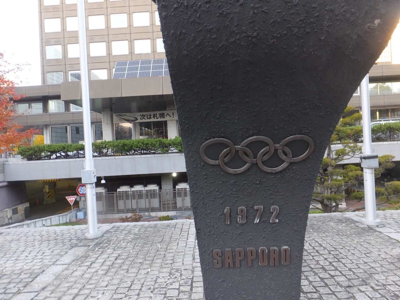 昔のオリンピックいえば東京と札幌。その札幌の聖火台は街のど真ん中、札幌市役所の前にありました。