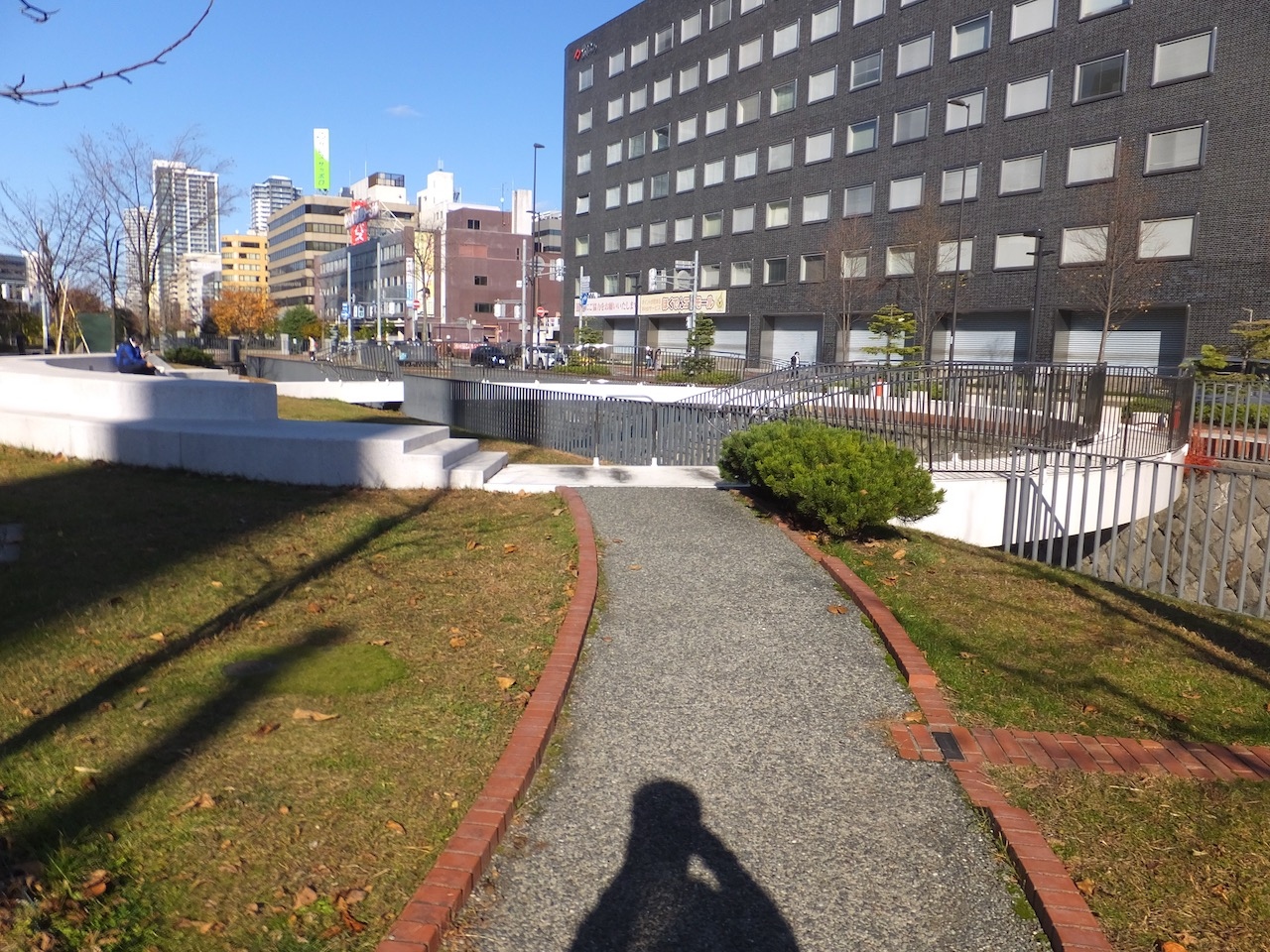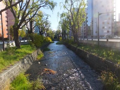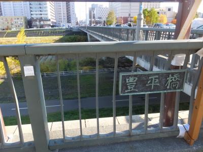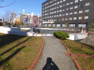 札幌駅の東側からまっすぐ南へ川が流れ、両側が緑地で遊歩道になっています。