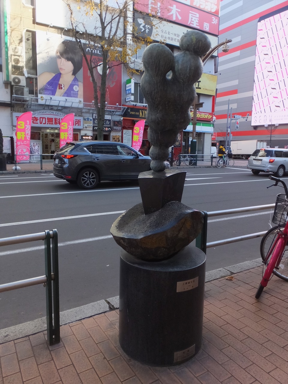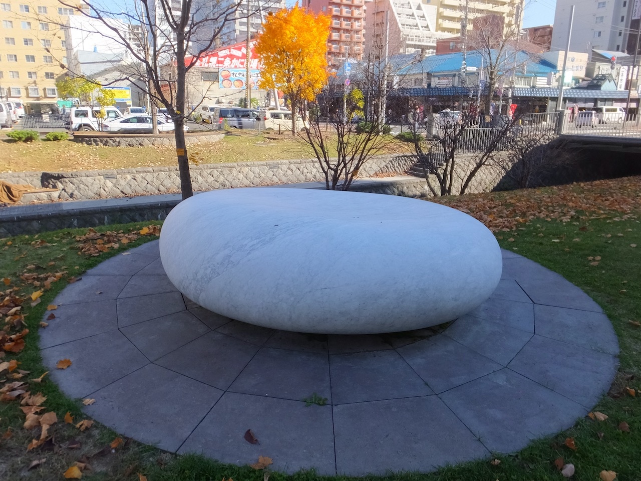 その一覧というか地図のようなものがあまりないのが難ですが、このような芸術品はたまたま見つけたというか、さりげなく在るのがいいのかもしれません。川の流れは細いですが清らかで大都市の中という感じがしません。札幌駅は新幹線が来るとこの川の上に駅ができて周囲もビルで埋まって人も多くなるでしょうから、今のうちにこの静かな雰囲気を味わっておきましょう。- 旅行時期
