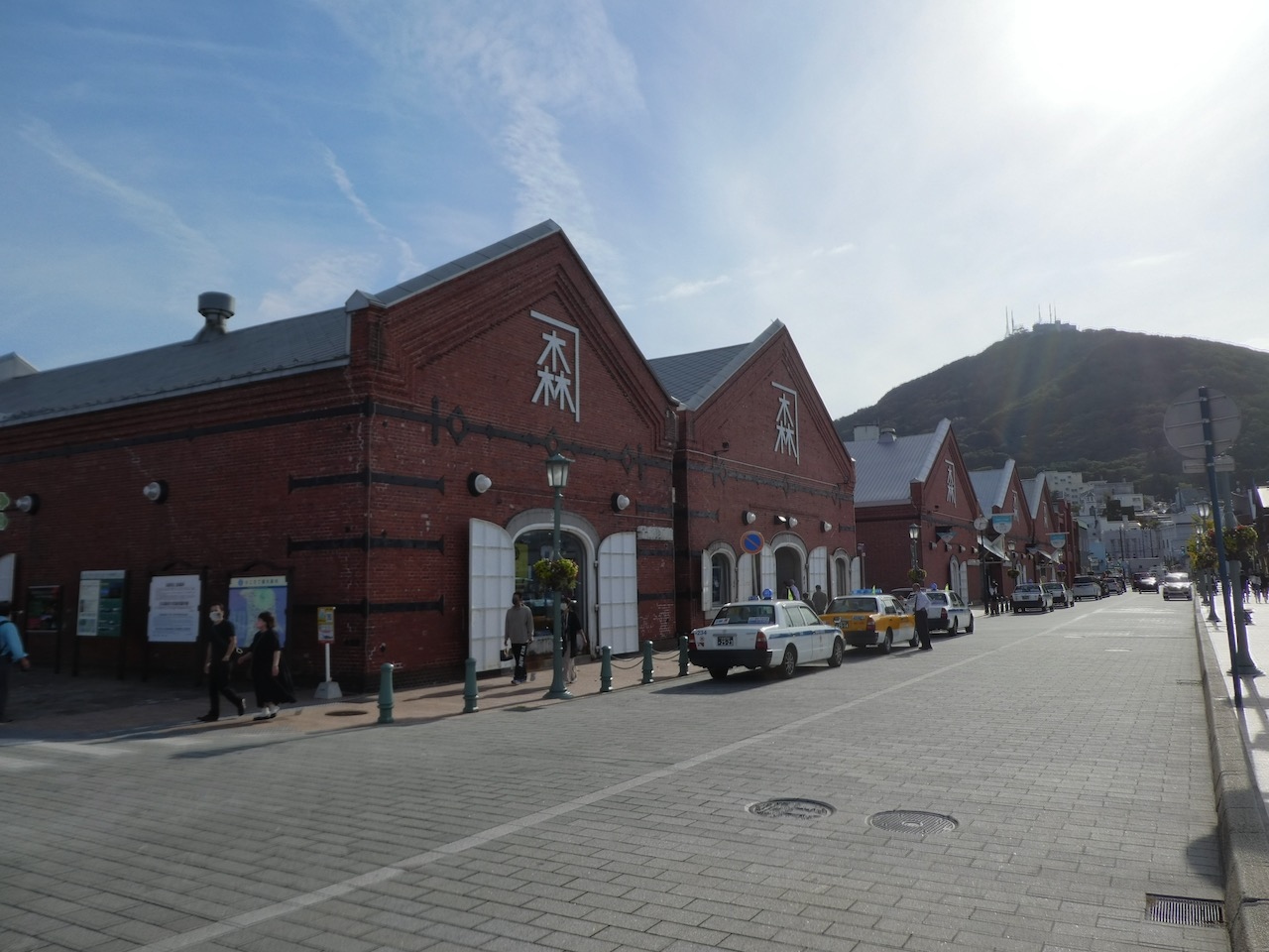 函館のベイエリアの観光のメイン。金森倉庫。昔は本当に倉庫があるだけだったのに倉庫の内部をお土産物屋さんやビアホールにしてどんどん観光化。倉庫の前からの函館山の景色が素晴らしいこともあって人出も多いです。