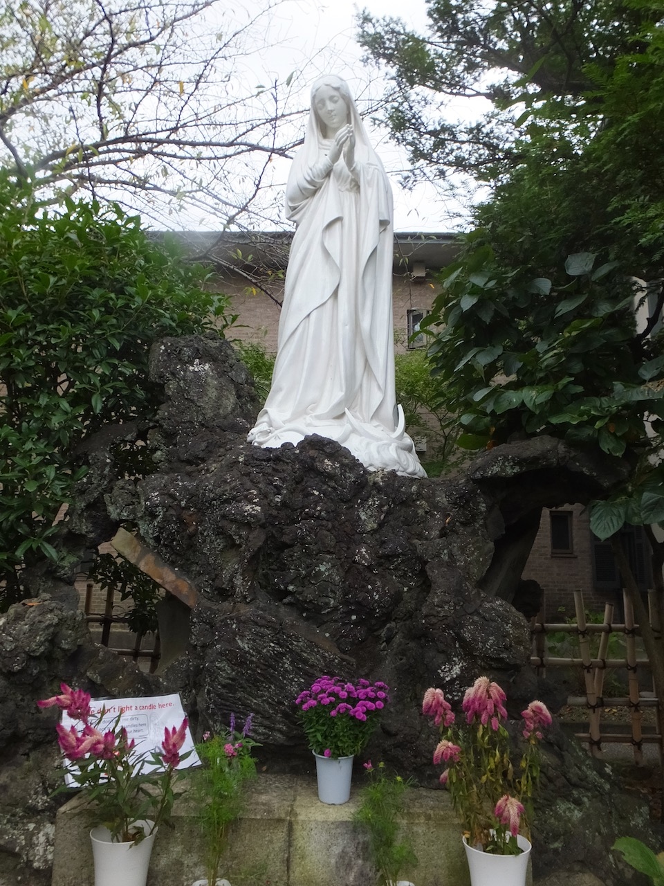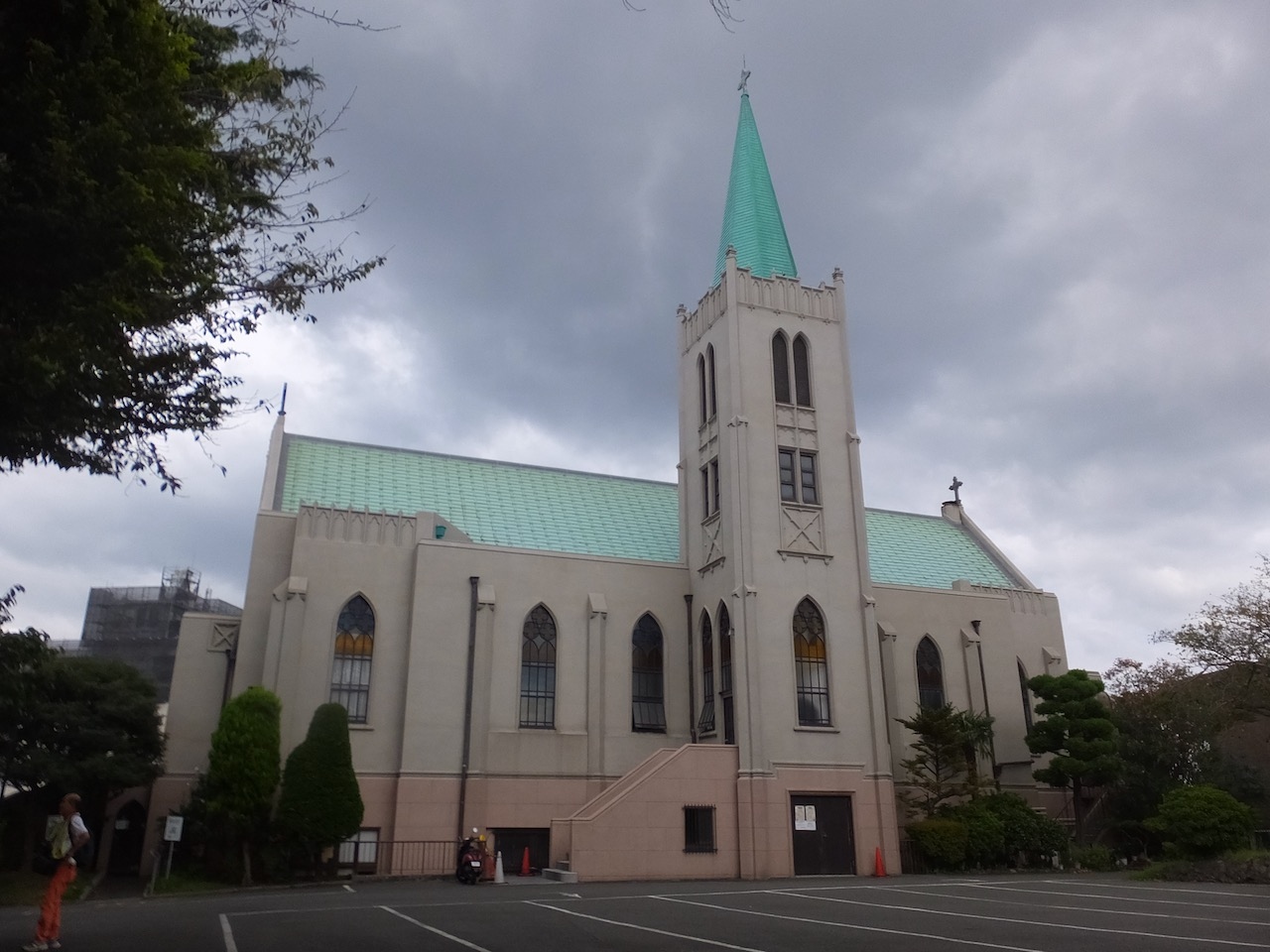おおきな建物に高い尖塔。まさに丘の上の教会。ただ緑の丘じゃなく住宅地の中なのがちょっと残念。もとは今の元町・中華街駅のあたりにあったのがここに移転してきたそう。そして元はゴシック調の建物だったのが関東大震災で崩壊、その再建だそう。それでもずいぶん古い建物です。その割にコンクリート造りがわかりやすく装飾のないシンプルな外観なので威厳がなくそれはちょっと寂しいです。
