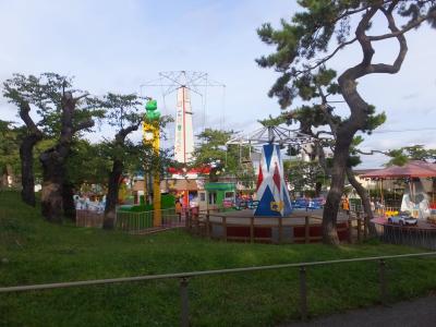 函館公園の散歩でにぎやかな声がその一角から。全回は夕暮れすぎてのい訪問だったので気がつかなかったのですが遊園地と動物園があったのでした。こじんまりとした感はありますが遊具の種類は多く、小さいですがけっこう乗ってますし、みな楽しそうです。入園料はなく、乗るのは1回300円。賑わうはずです。こういういつでも来れていつでも遊べる遊園地があるのはいいですね。