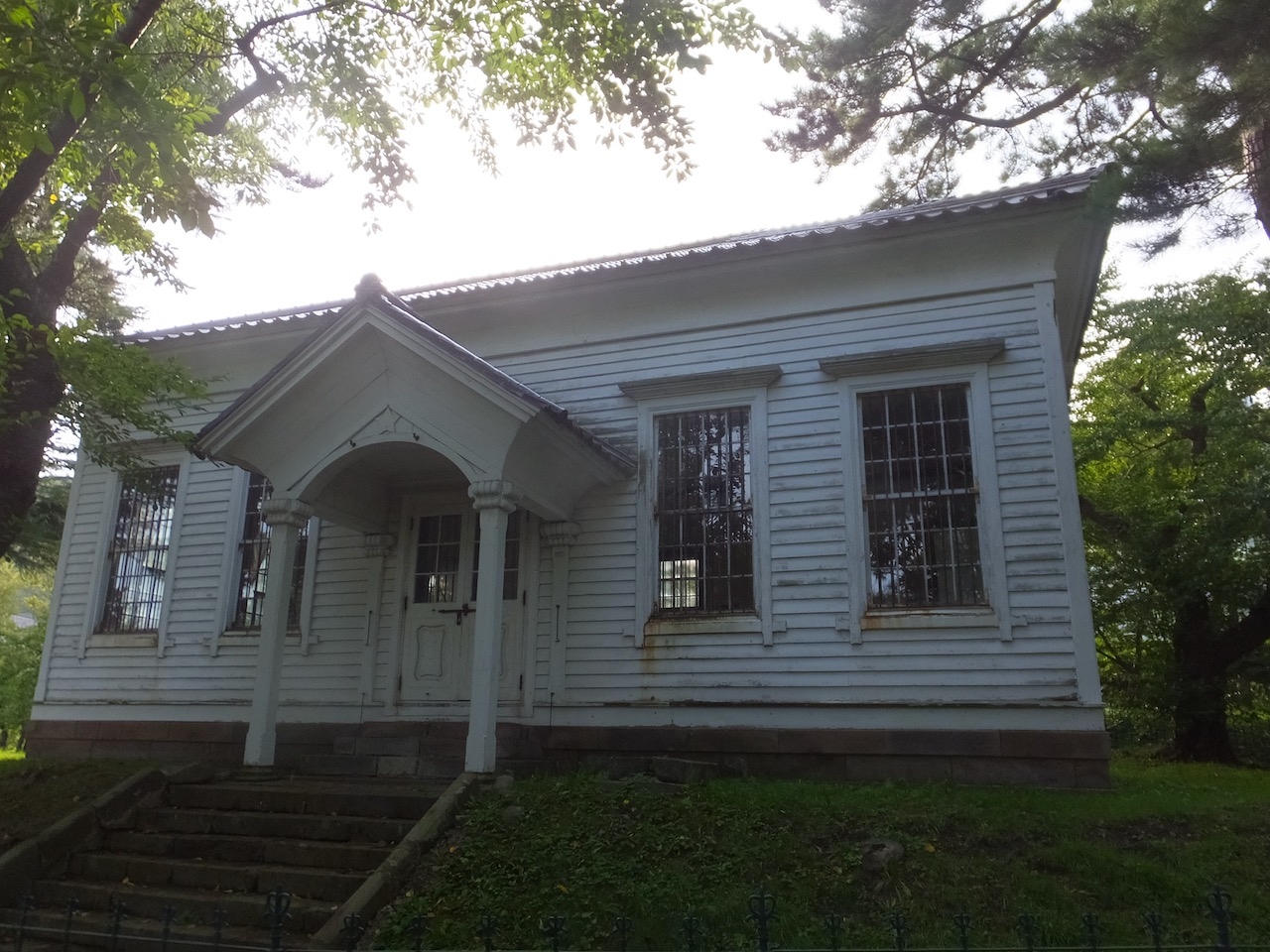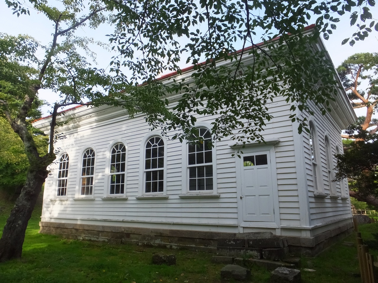 函館公園の奥の方(谷地頭方向)の林の中に2軒、小さな洋風の建物があります。これが旧函館博物館の建物で、当時はアイヌ民族の資料や水産館として使用されていあちょうですが現在は外観を見るだけです。