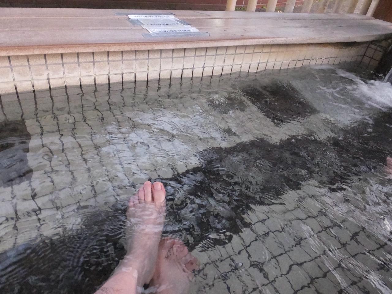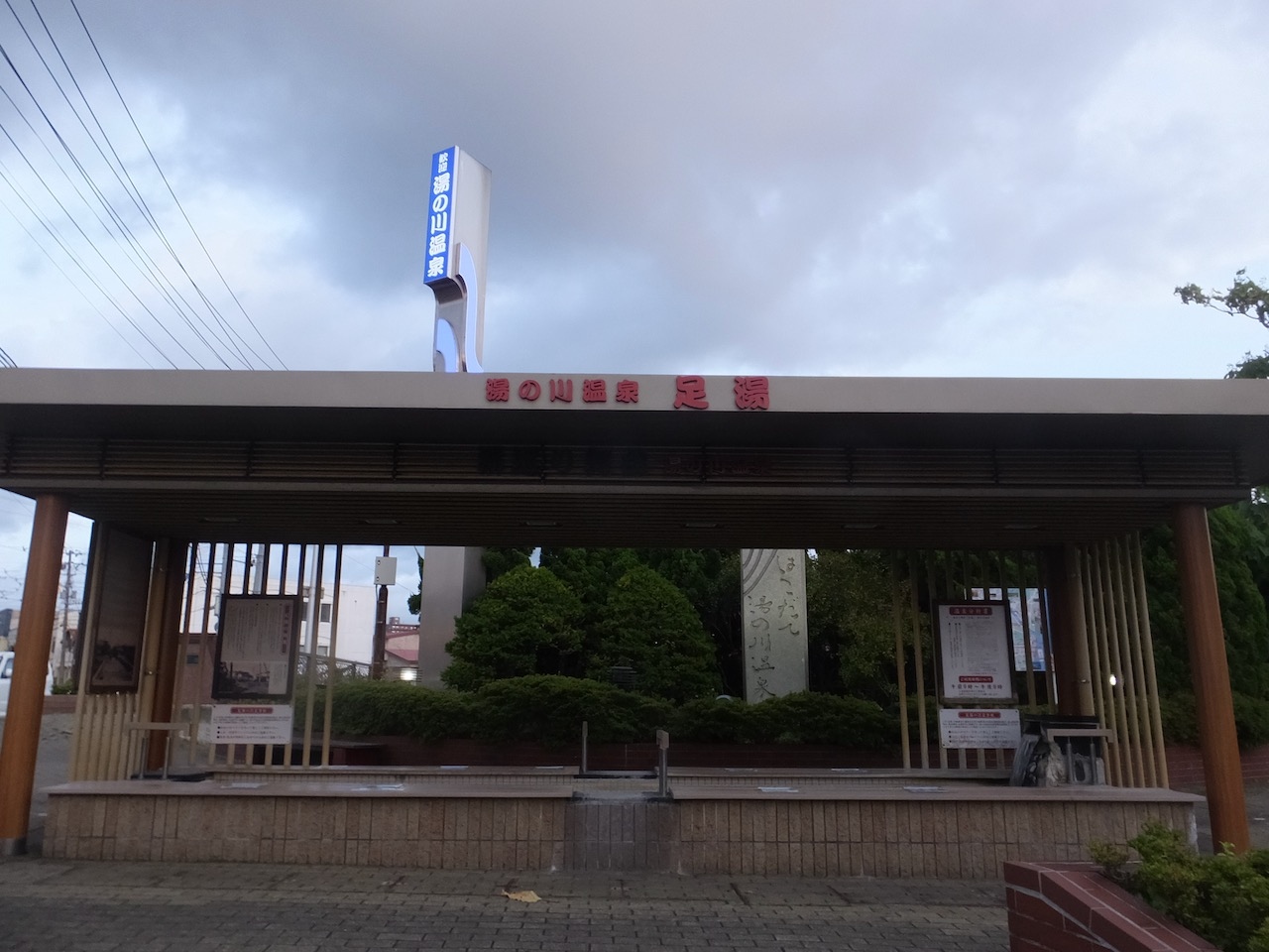 函館市電の湯の川温泉の電停の目の前にあります。立派な屋根があって東屋というよりは建物に近い立派なものです。このコロナ下でも12人はゆったり入れそうな大きなもので、お湯もたっぷり。なみなみ。