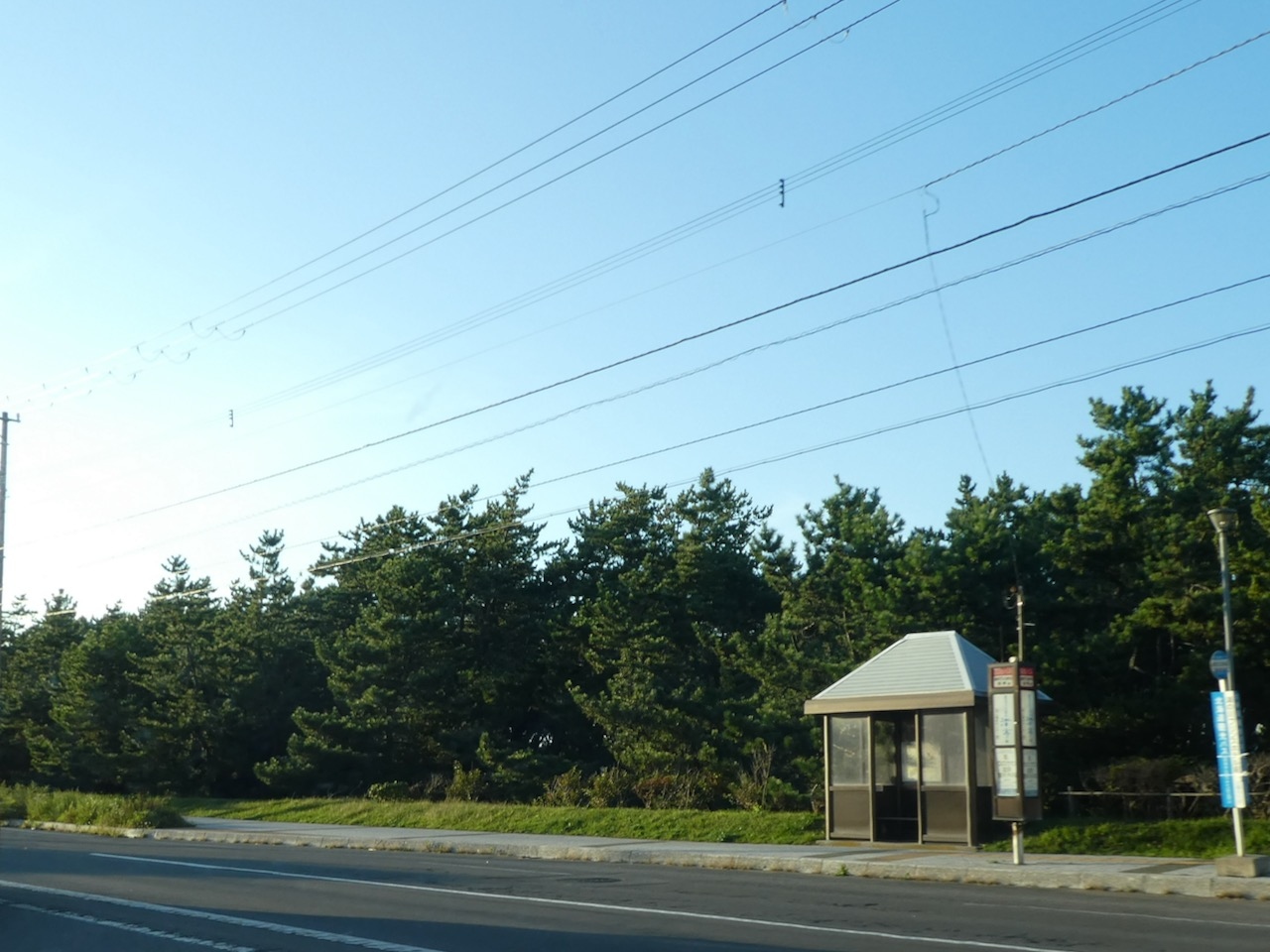 函館から漁火通りをバスで湯の川温泉にやってくると湯の川プリンスホテル渚亭前バス停の背後の森がこの黒松の森です。函館の街は砂州の上にできているので、当時は残っていた砂丘から飛んでくる砂から温泉街を守るために金森倉庫の創設者が私財で作った暴風防砂林の一部が残されているものです。海岸に沿って帯状になっていた林のごく一部だけなのですが奥行きがあり、まさに森です。背がそう高くないのも強風ゆえでしょう。湯の川温泉へは市電が普通かもしれませんが、片道はバスでこちらから、というのも歴史を知る上でいいかもしれません。