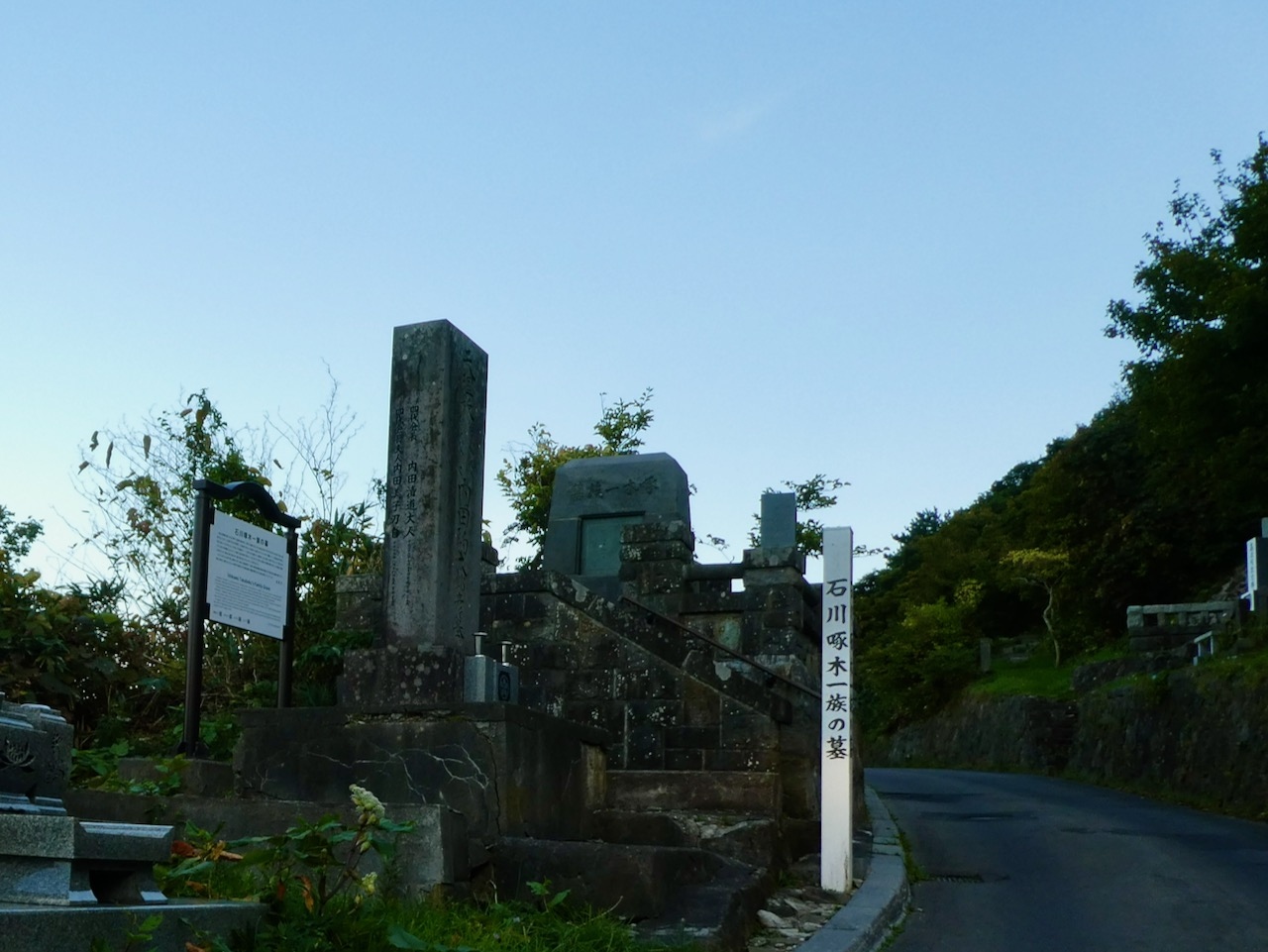 解説版を読んでも、なぜに与謝野夫妻の碑なのかはちょっとわかりにくいです。たしかに石川啄木との関係があるので、一族の墓もあるこの地なのでしょうが、どちらかというと地元の名士の追悼の意味も兼ねた碑のように感じました。- 旅行時期