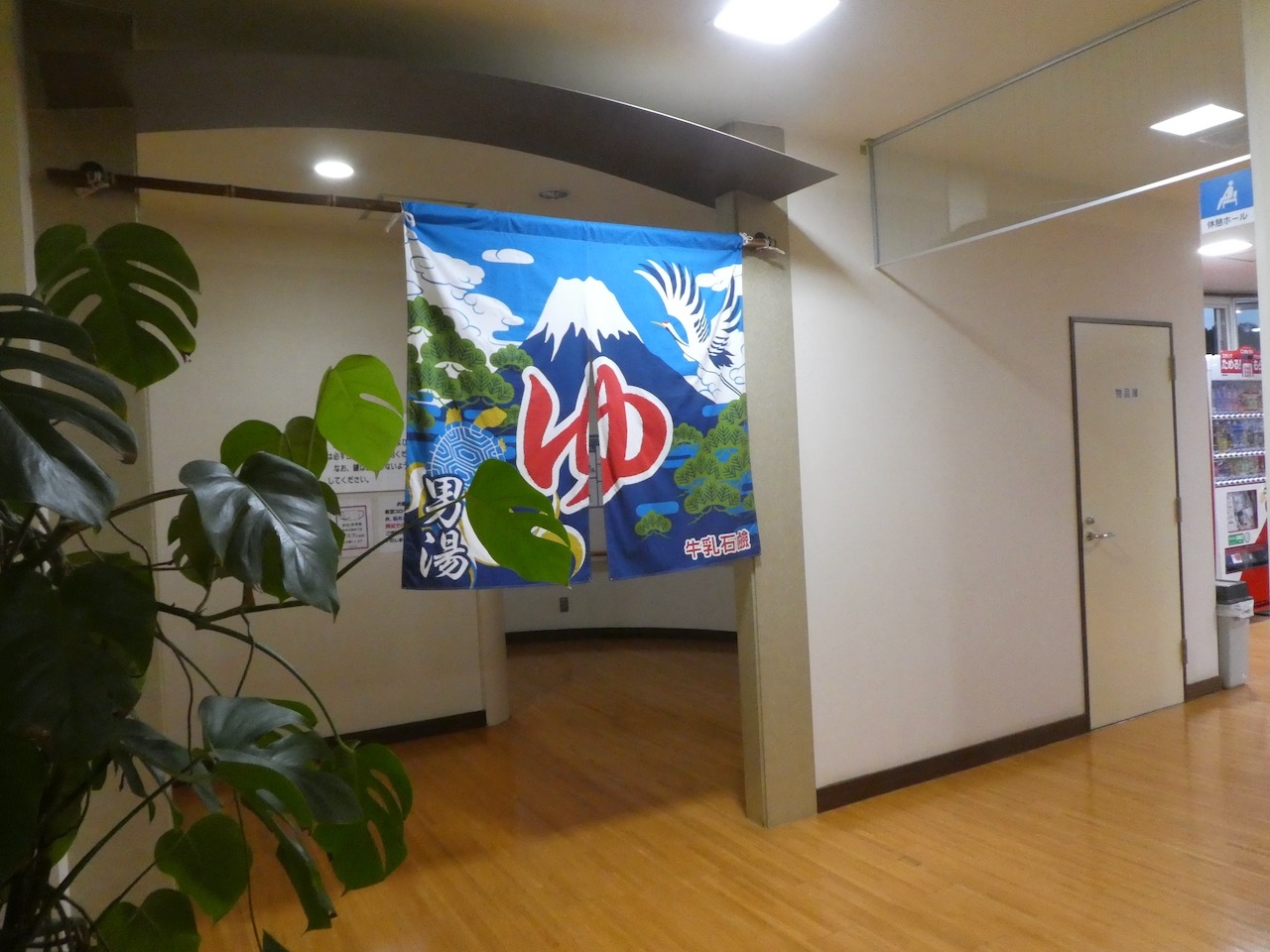 大浴場は最上階。トレインビューです。丸見えにならないように曇りガラスの一部に透明部分があります。